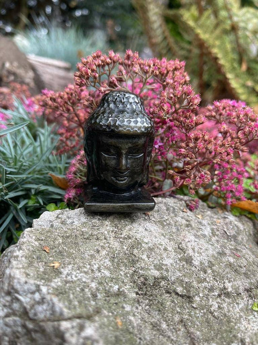 Gold sheen obsidian buddha head carving 115g