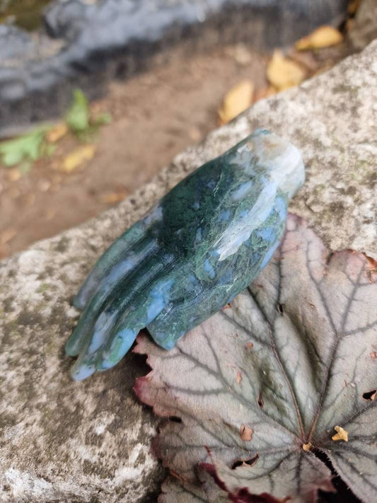 Beautiful unique moss agate hand carving 73g