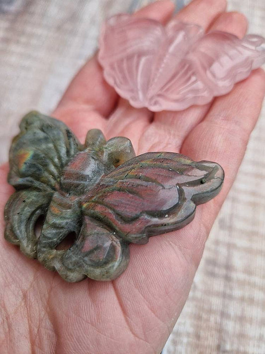 Premium quality crystal butterfly carving Rose quartz, Labradorite butterfly.