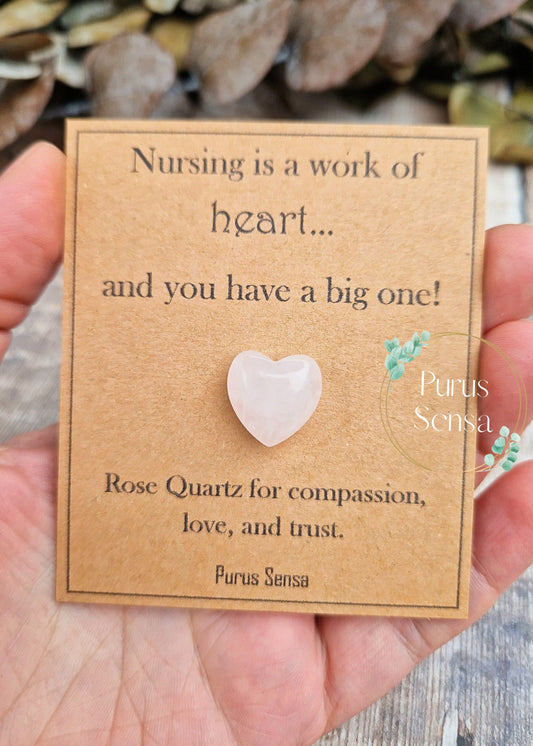 Cute Rose Quartz Heart Crystal gift for nurse.