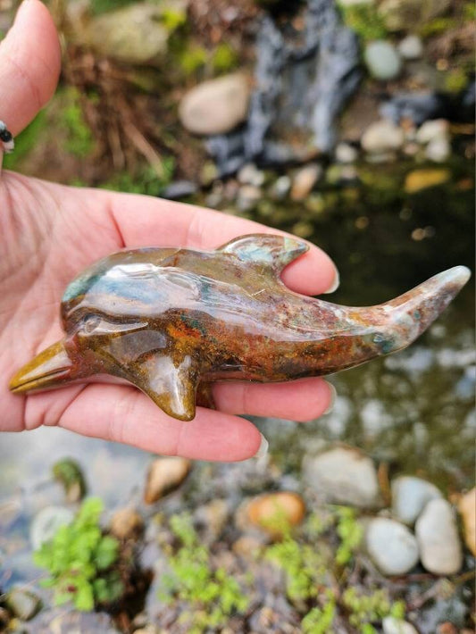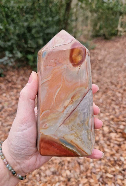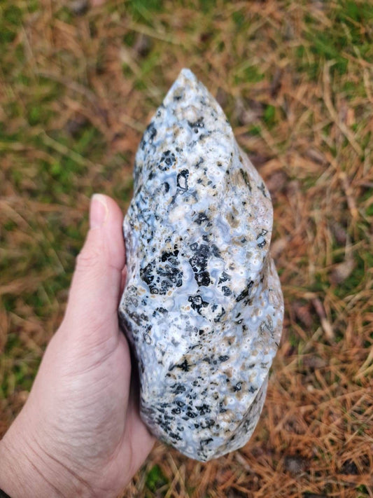 Rare Beautiful large ocean jasper orbicular freeform flame 1.04kg 18cm