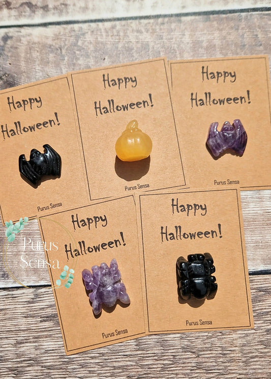 Halloween crystal gift. Genuine crystal for Halloween. Spooky spider bat pumpkin. Amethyst. Black obsidian. For Halloween. Trick or treat