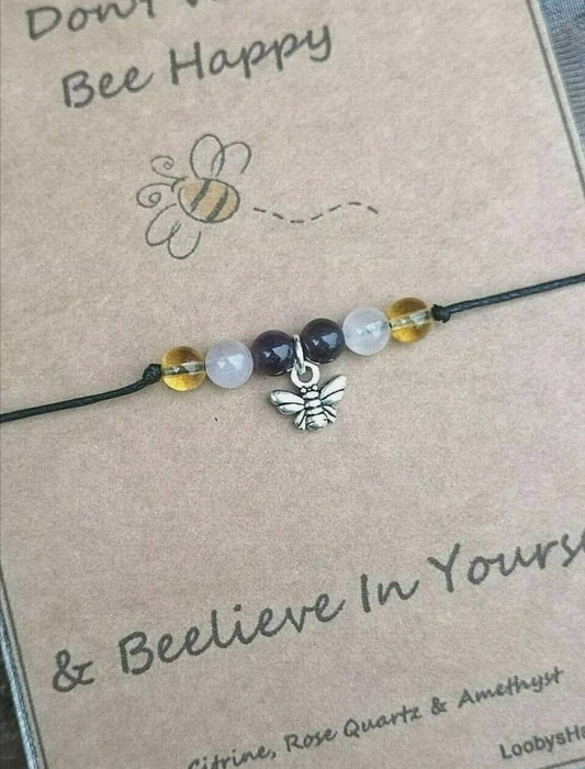 GOOD LUCK crystal cord, silver or rose gold chain bracelet / anklet and thumb stone set