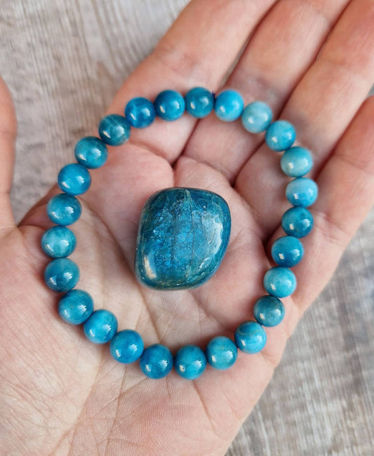 Beautiful blue apatite bracelet and tumble stone set