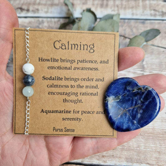 CALMING crystal cord, silver or rose gold chain bracelet and thumb stone set