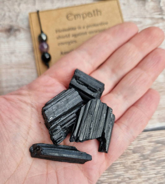 Empath support bracelet crystal set with raw Black tourmaline stone