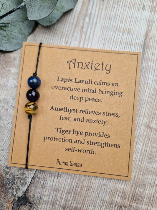 ANXIETY 3 bead cord, silver or rose gold chain crystal bracelet and keyring set