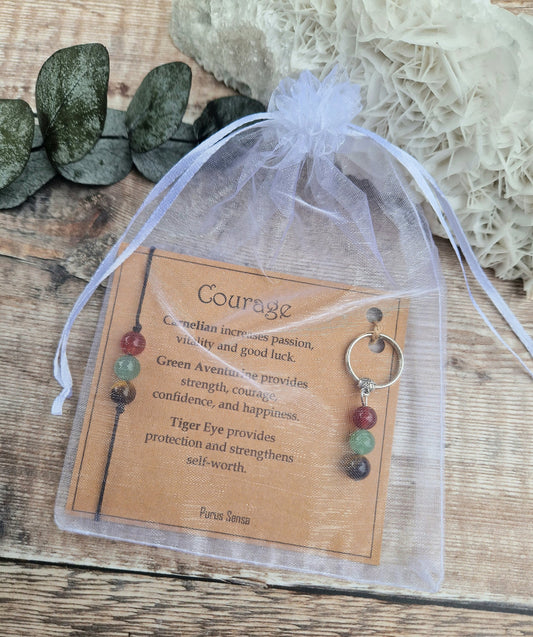 COURAGE 3 bead Cord, Silver or Rose gold chain crystal bracelet and keyring set