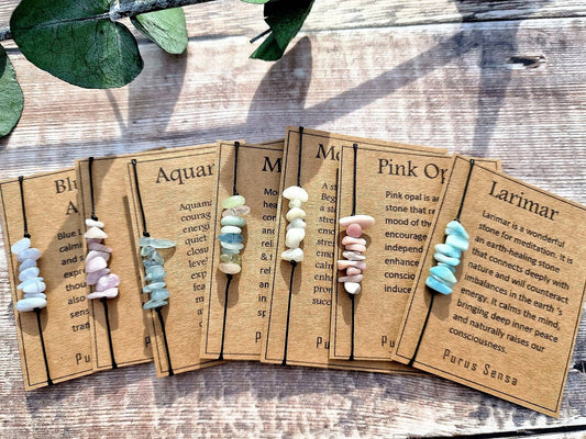 Larimar, aquamarine, morganite, blue lace agate, pink opal, Moonstone or kunzite healing chip gemstone crystal chain bracelet.