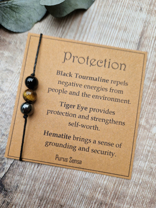 PROTECTION crystal cord, silver or rose gold chain bracelet and thumbstone set