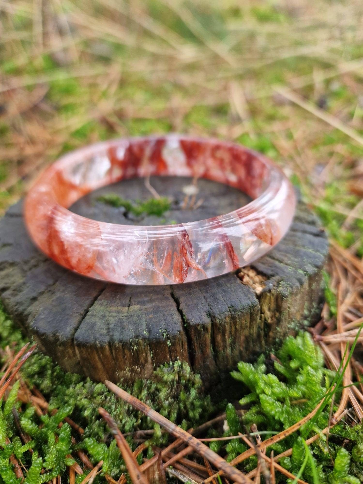 Here we have a beautiful AAA quality Fire quartz bangle. Its inner diameter measures 65mm and the thickness is 14.5mm.