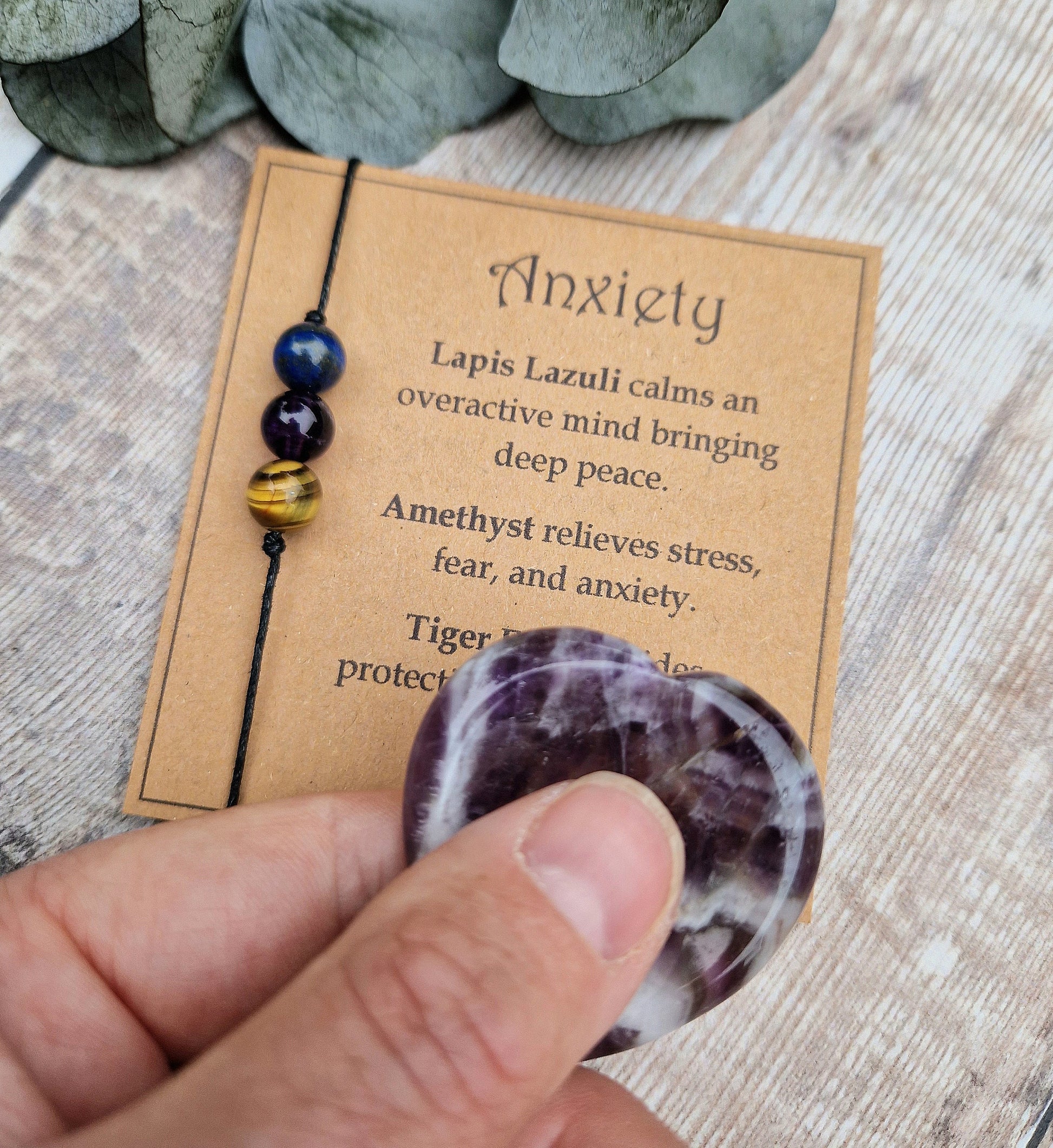 Anxiety bracelet and crystal set. Crystal bracelet / anklet for anxiety. Crystal healing bracelet. gift. Crystal support bracelet.