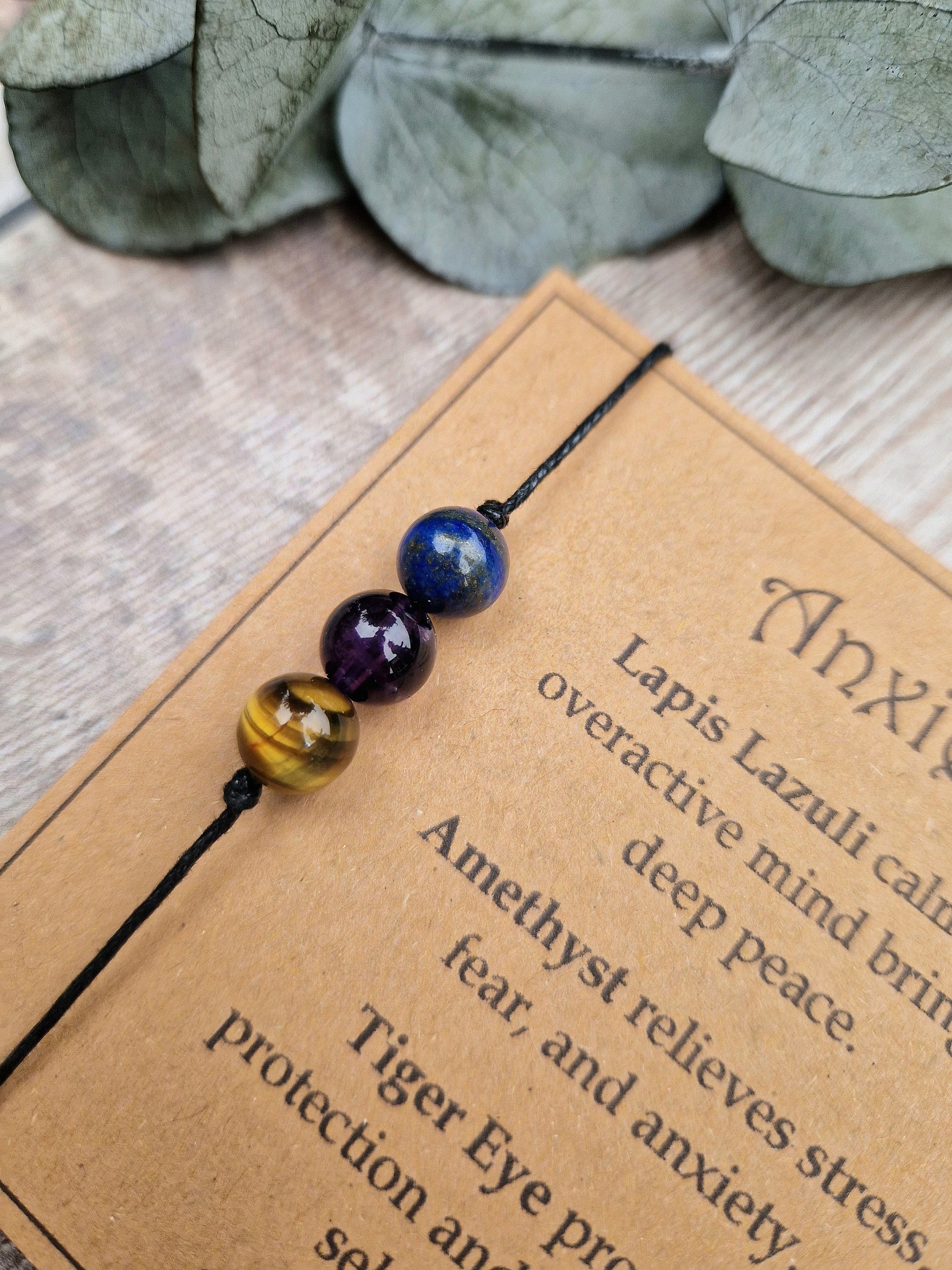 The crystal bracelet / anklet has been carefully designed using a combination of genuine, high quality gemstone beads associated with anxiety ✨️