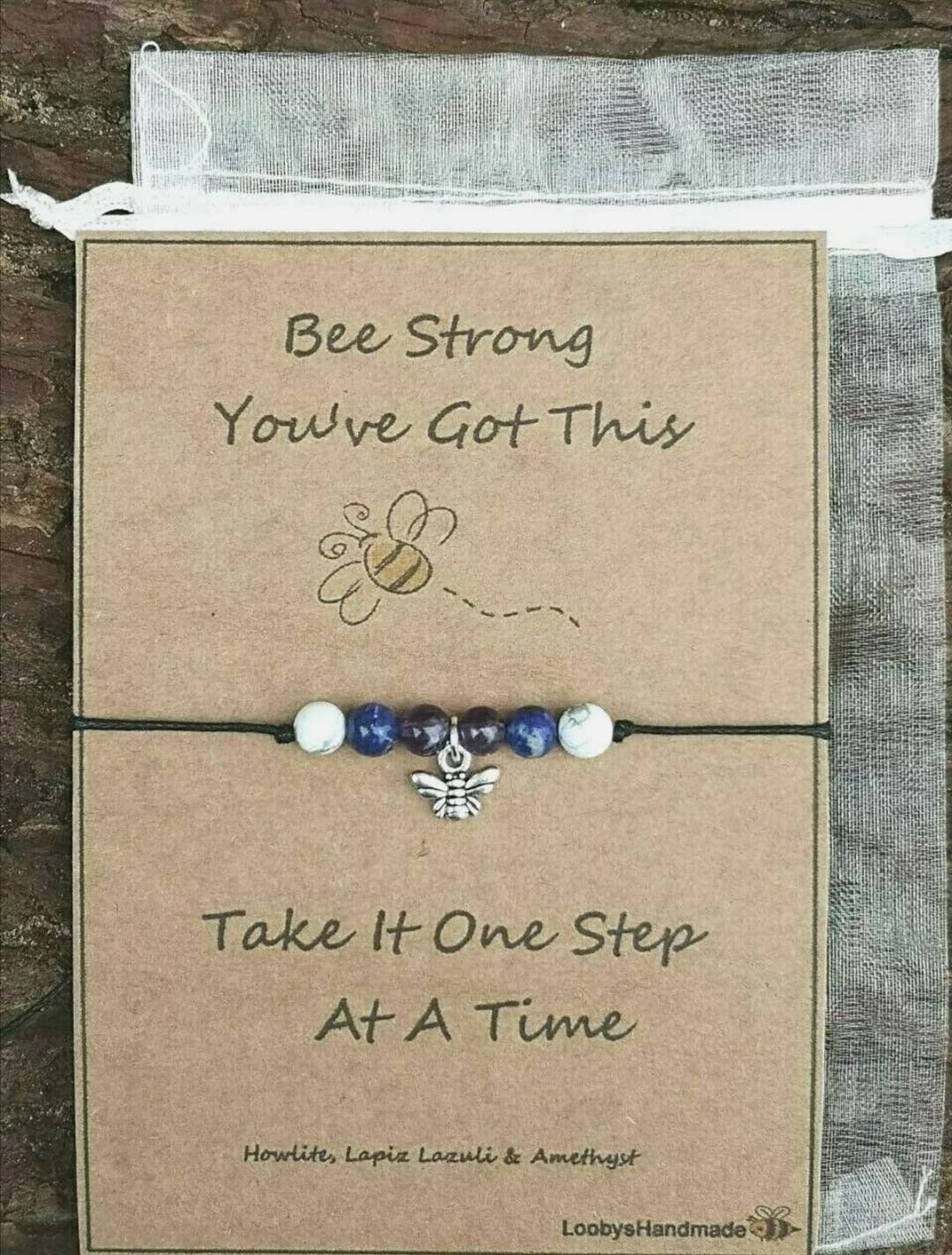 Anxiety Depression Support Bracelet Healing Gemstone Gift Card Howlite Amethyst Lapis Lazuli Bee Charm Adjustable Cord