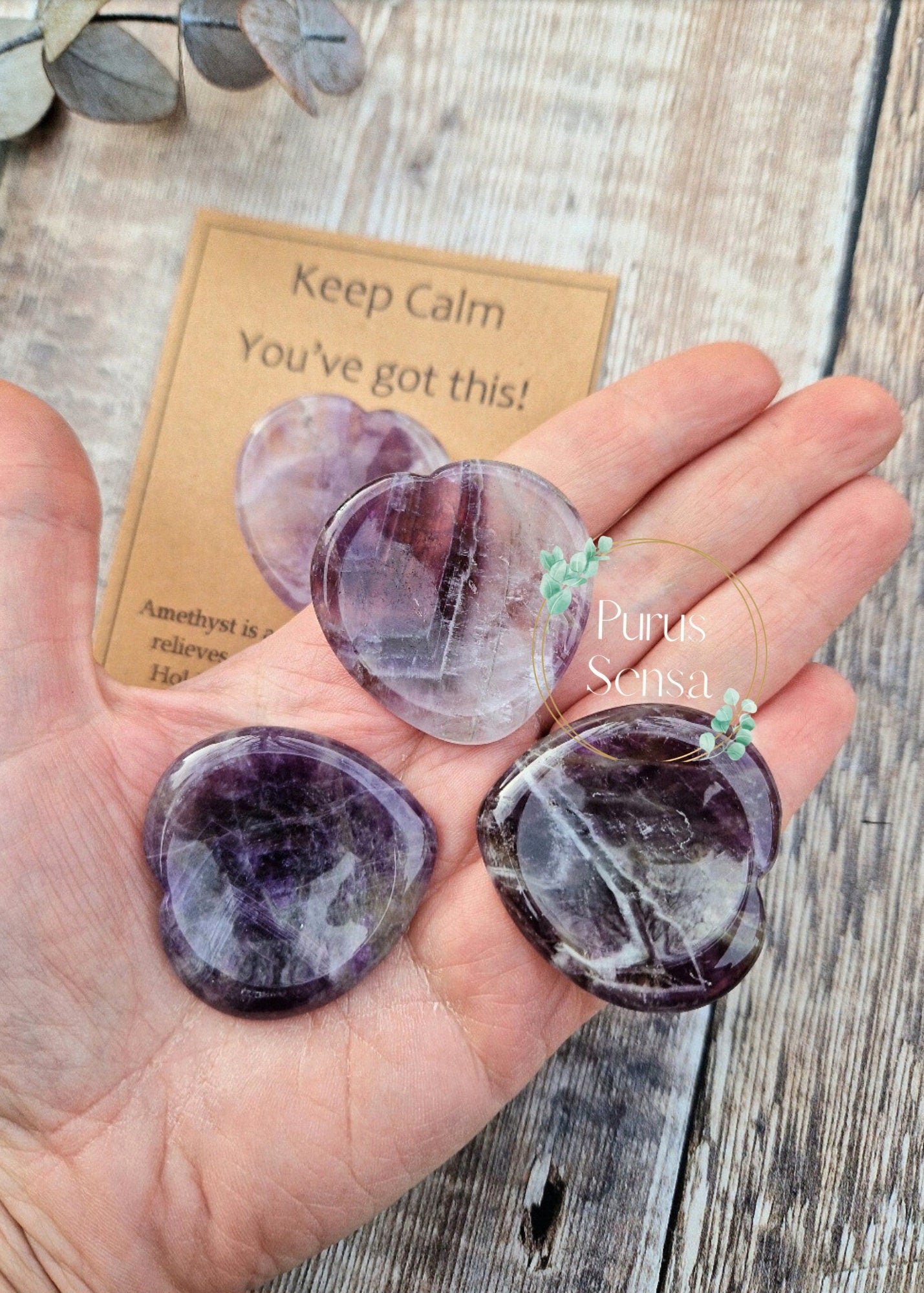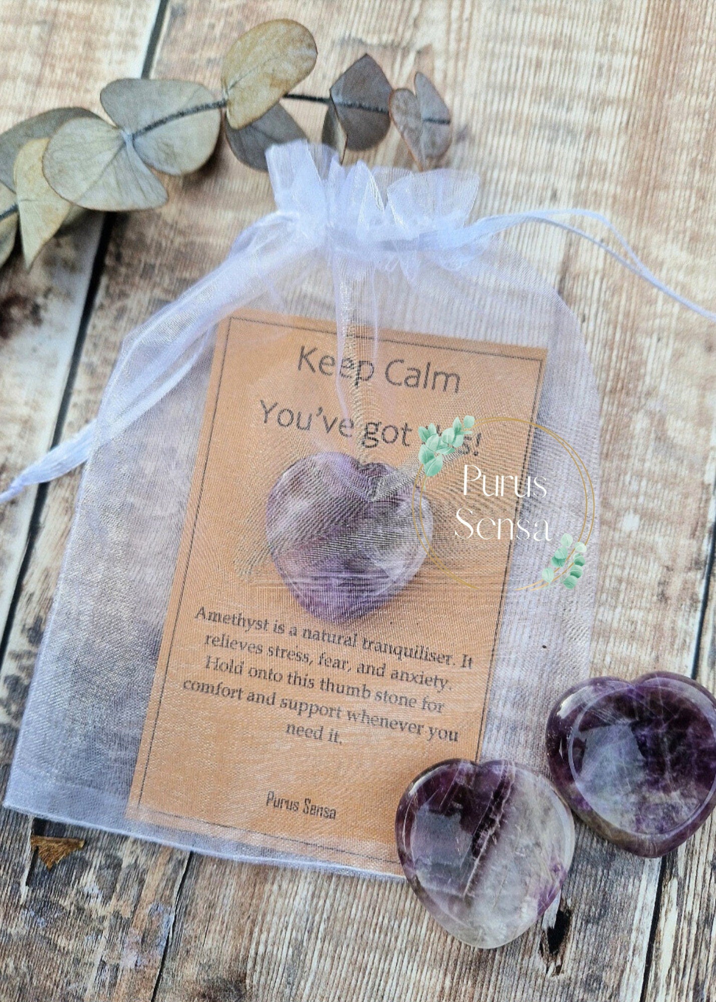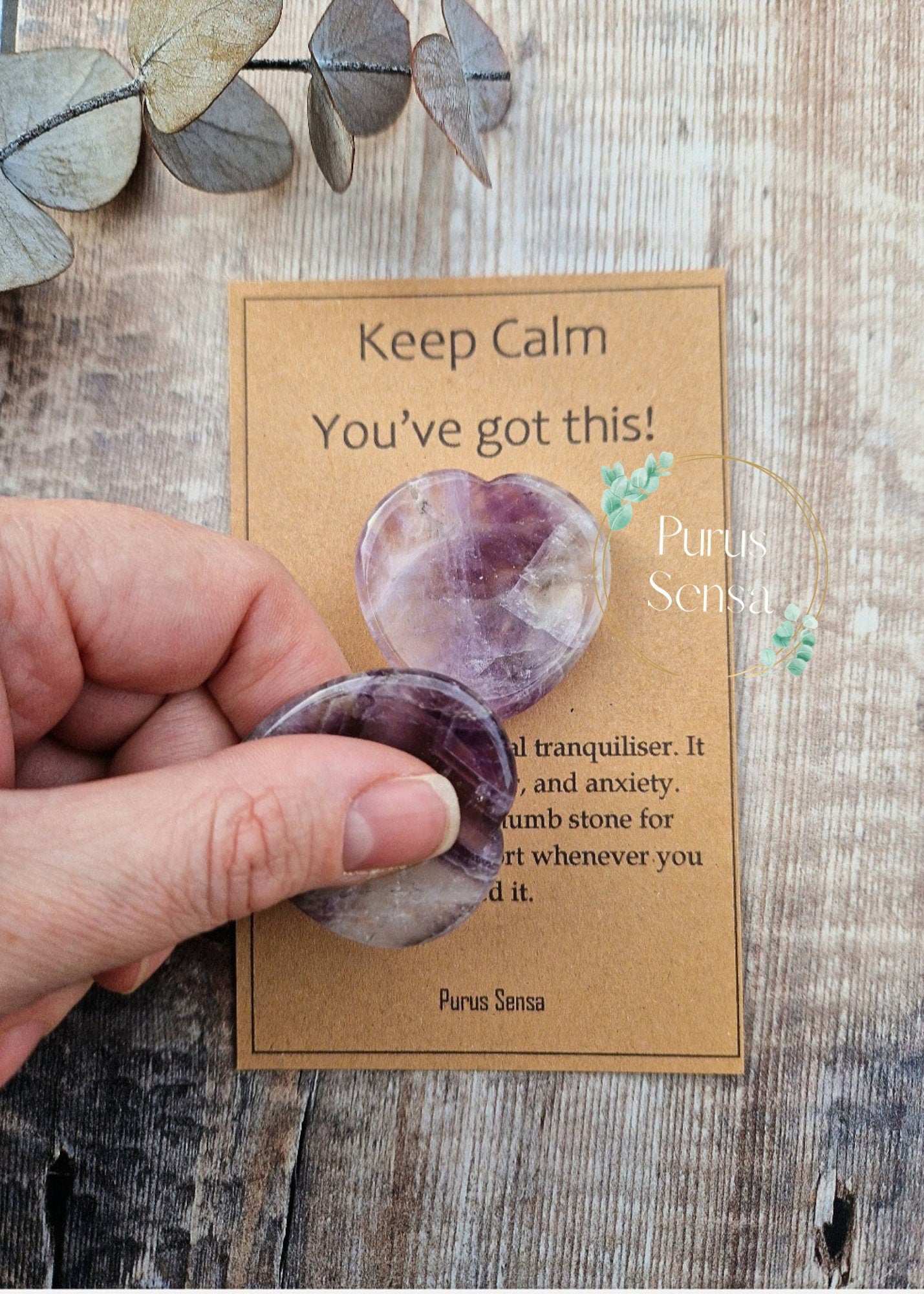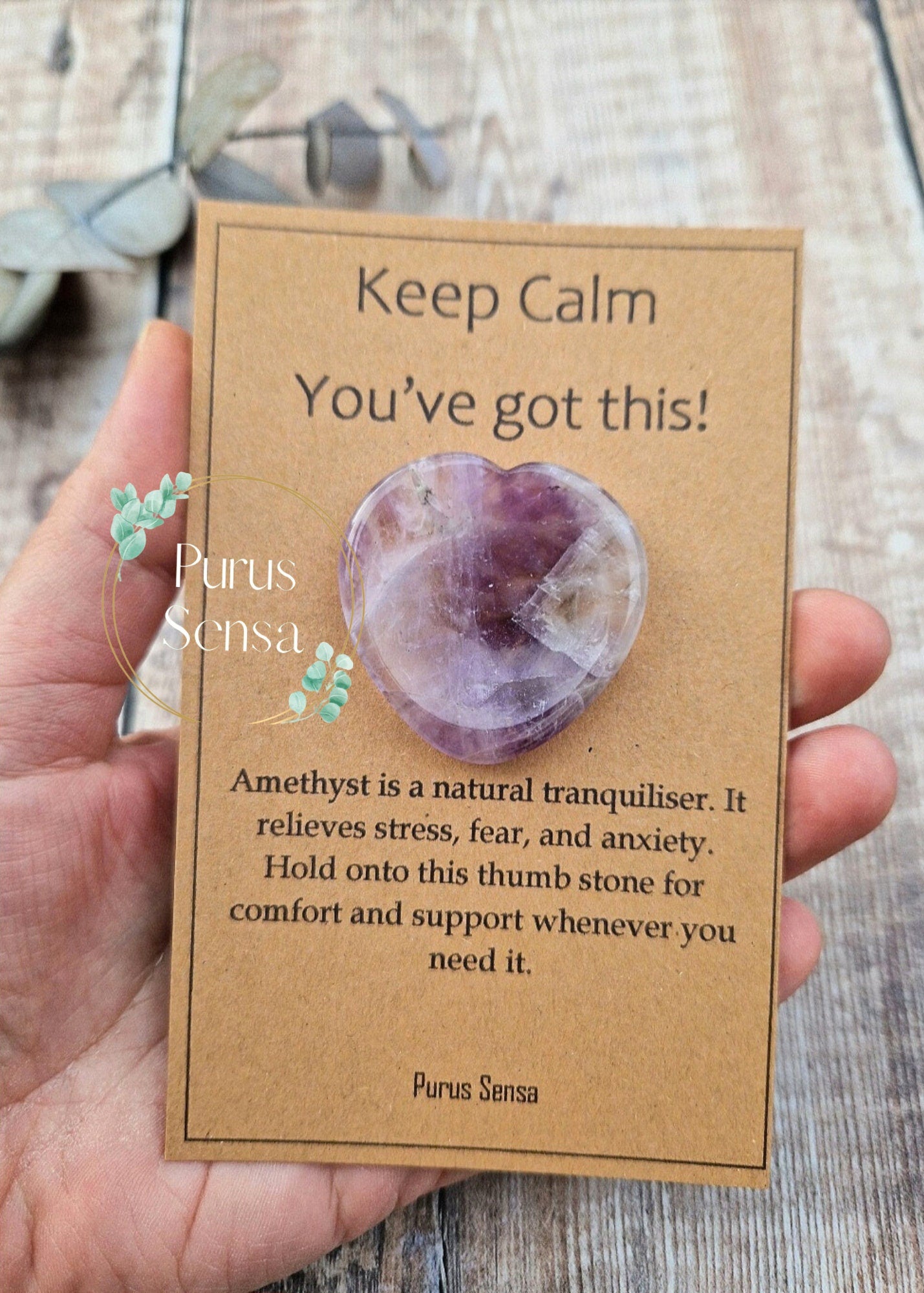 Anxiety support. Anxiety gift. Amethyst crystal. Stress relief crystal. Insomnia support. Worry stone thumb stone gift. Thinking of you.