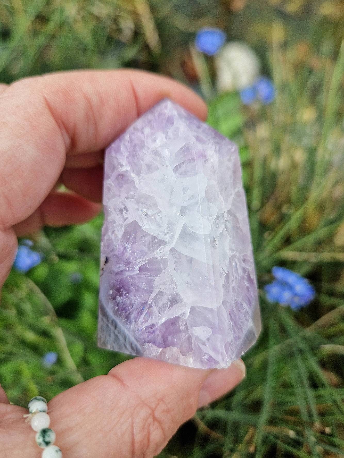 Beautiful agate with amethyst tower. Amethyst and agate. With amethyst. Premium quality amethyst tower