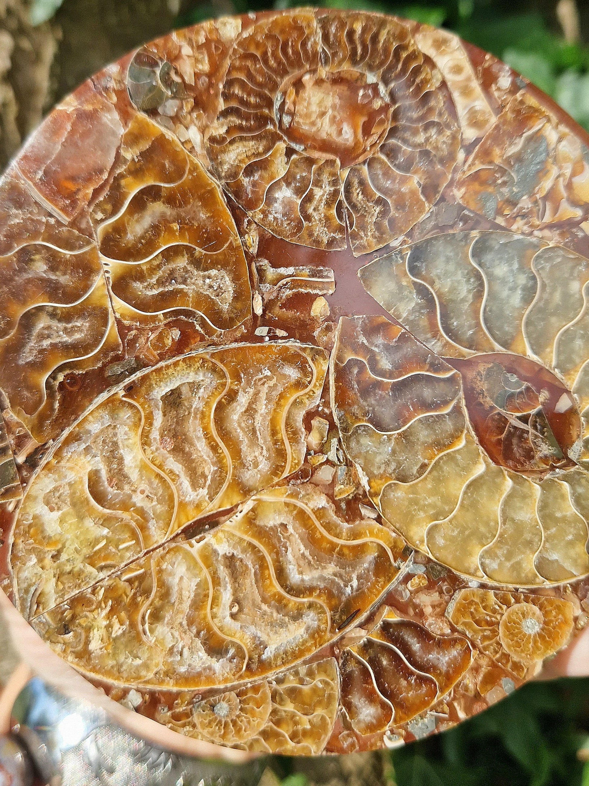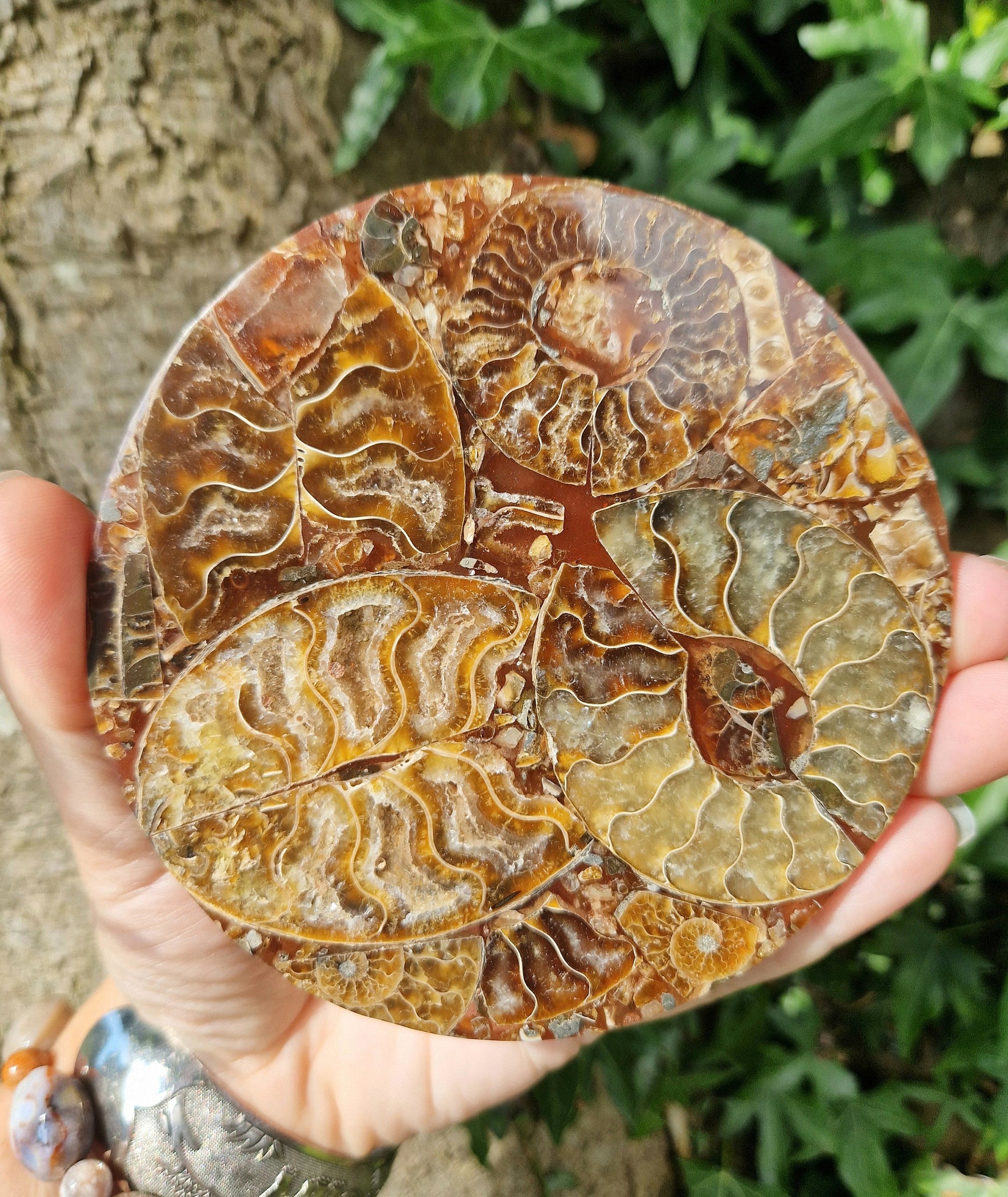 beautiful ammonite fossil slab coaster ornament. Large ammonite fossil. premium quality. Collector. Geology gift