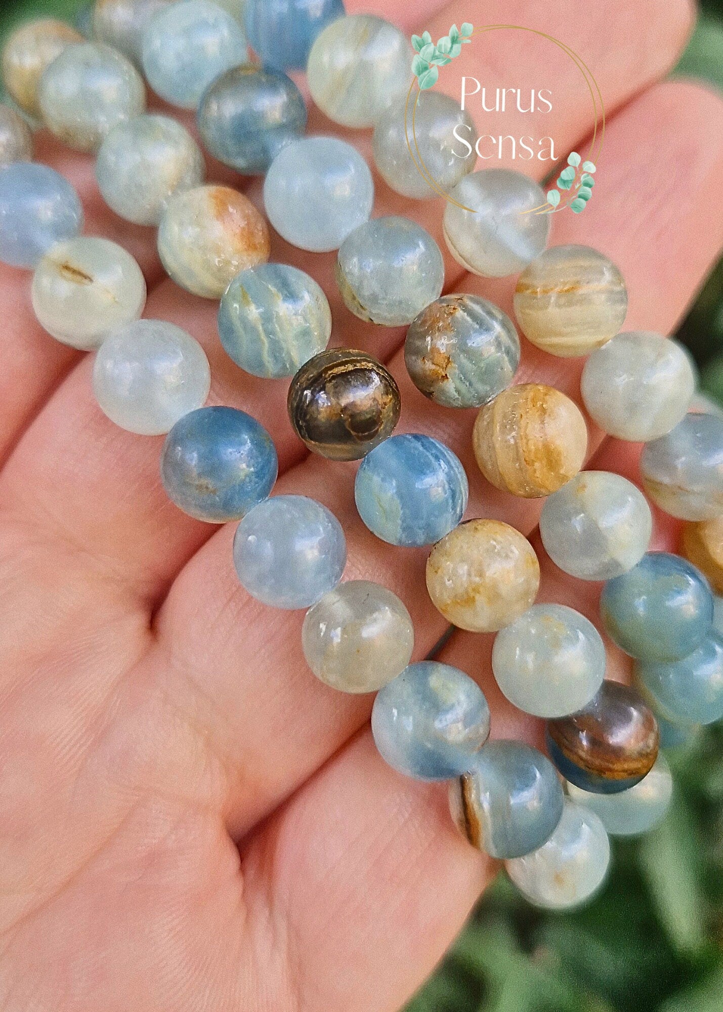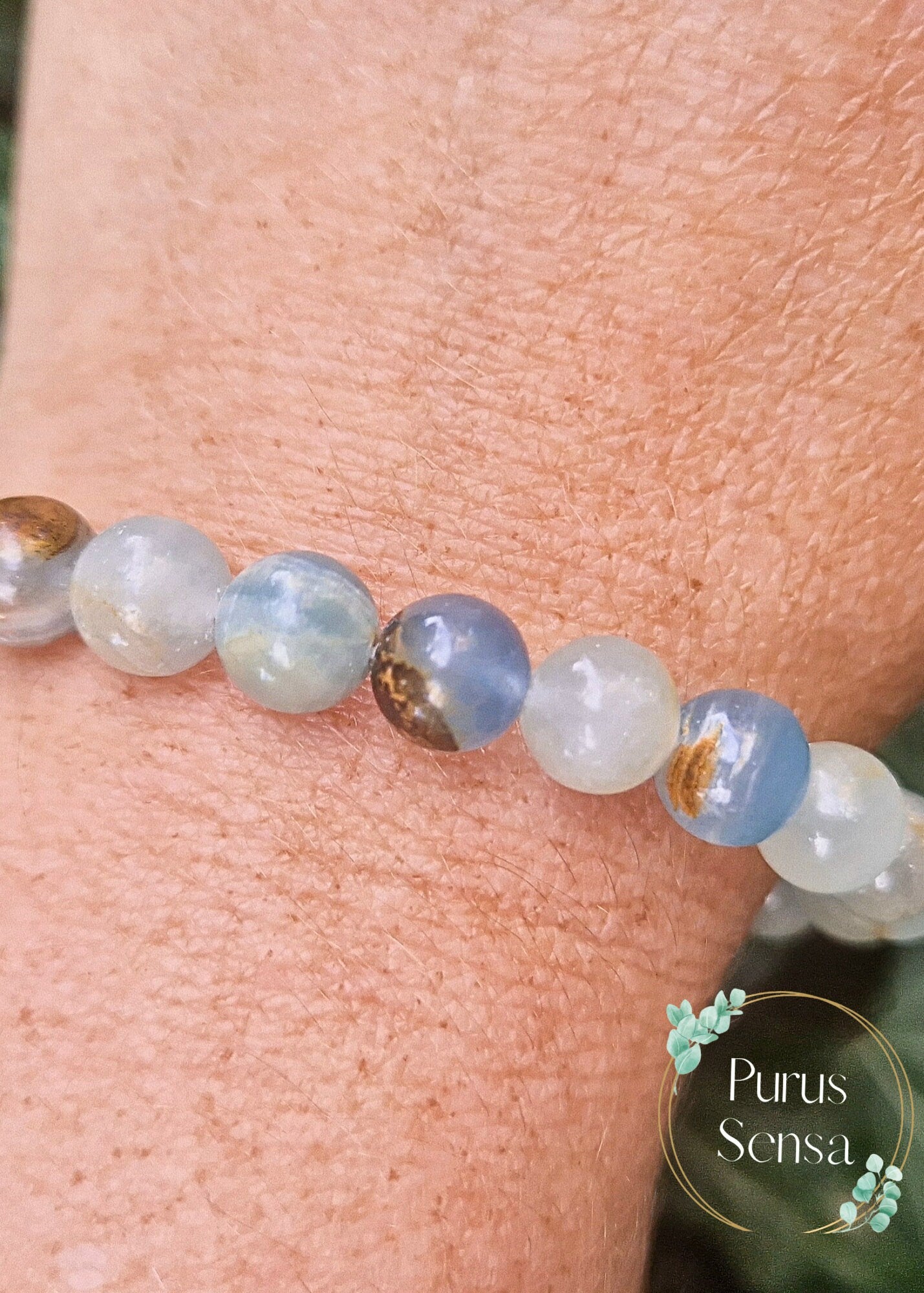 beautiful high grade blue onyx bracelet. natural blue onyx crystal bracelet. beaded crystal bracelet