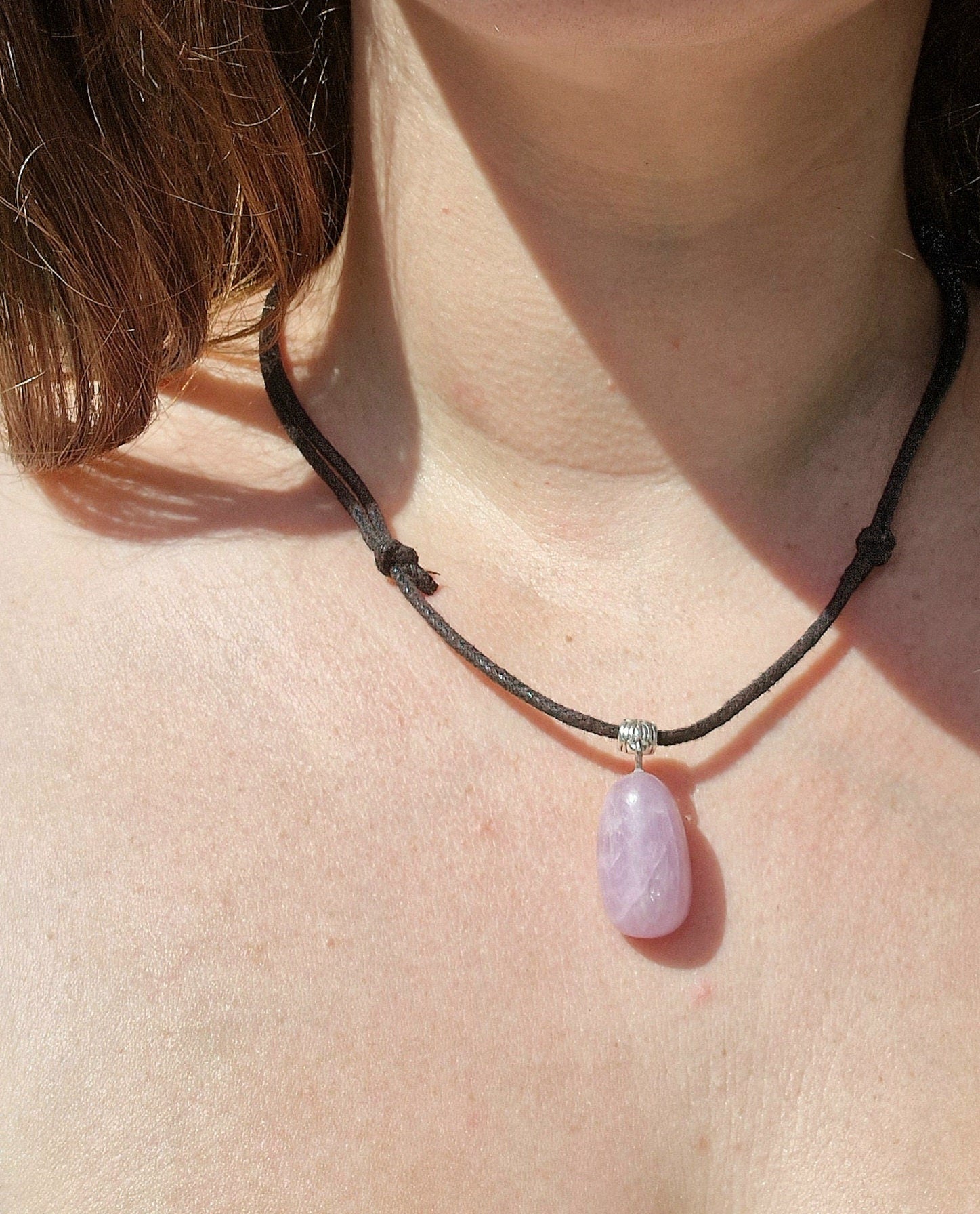 Beautiful kunzite necklace. Kunzite cord necklace. Adjustable crystal necklace / choker. AAA grade kunzite necklace