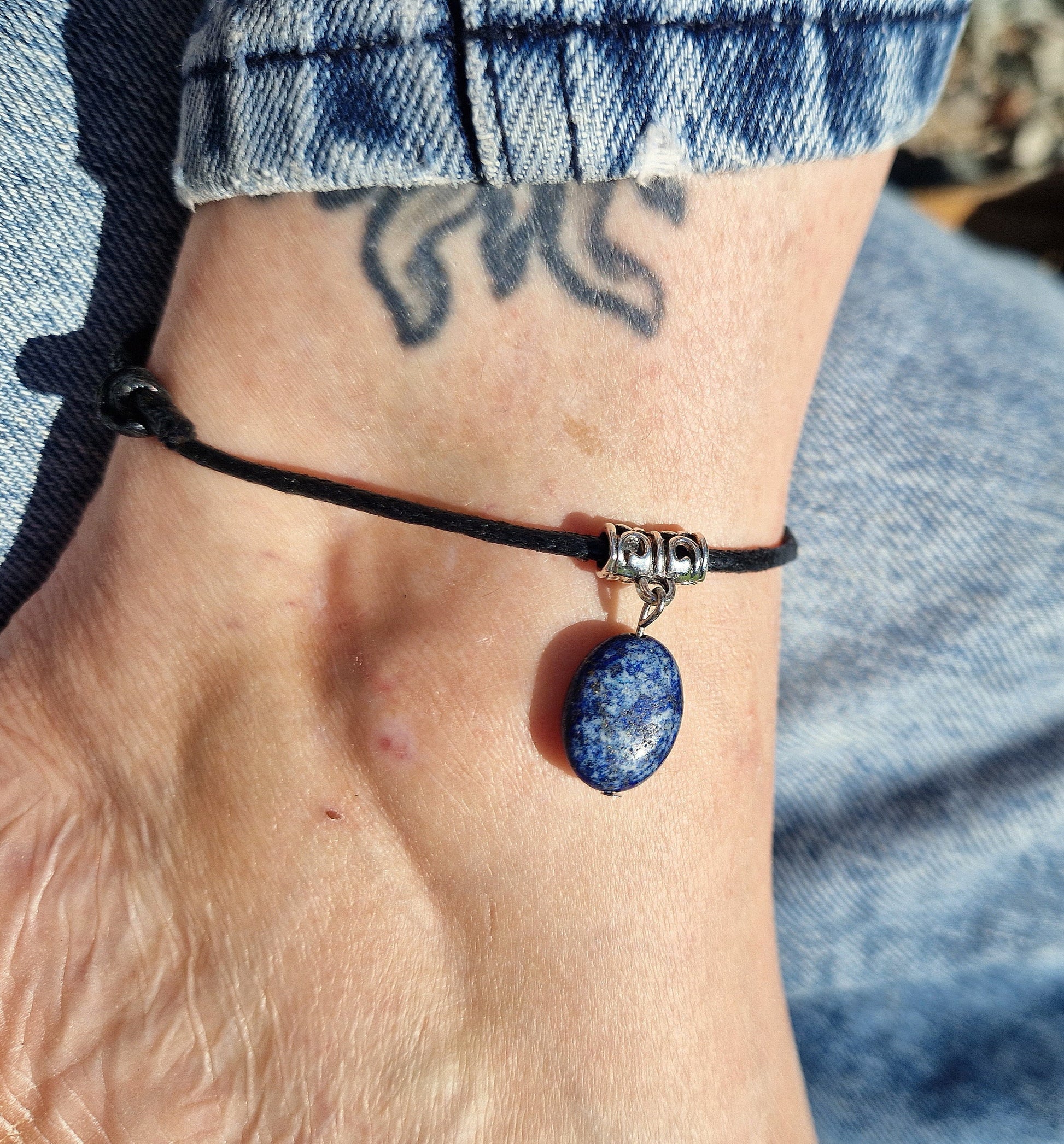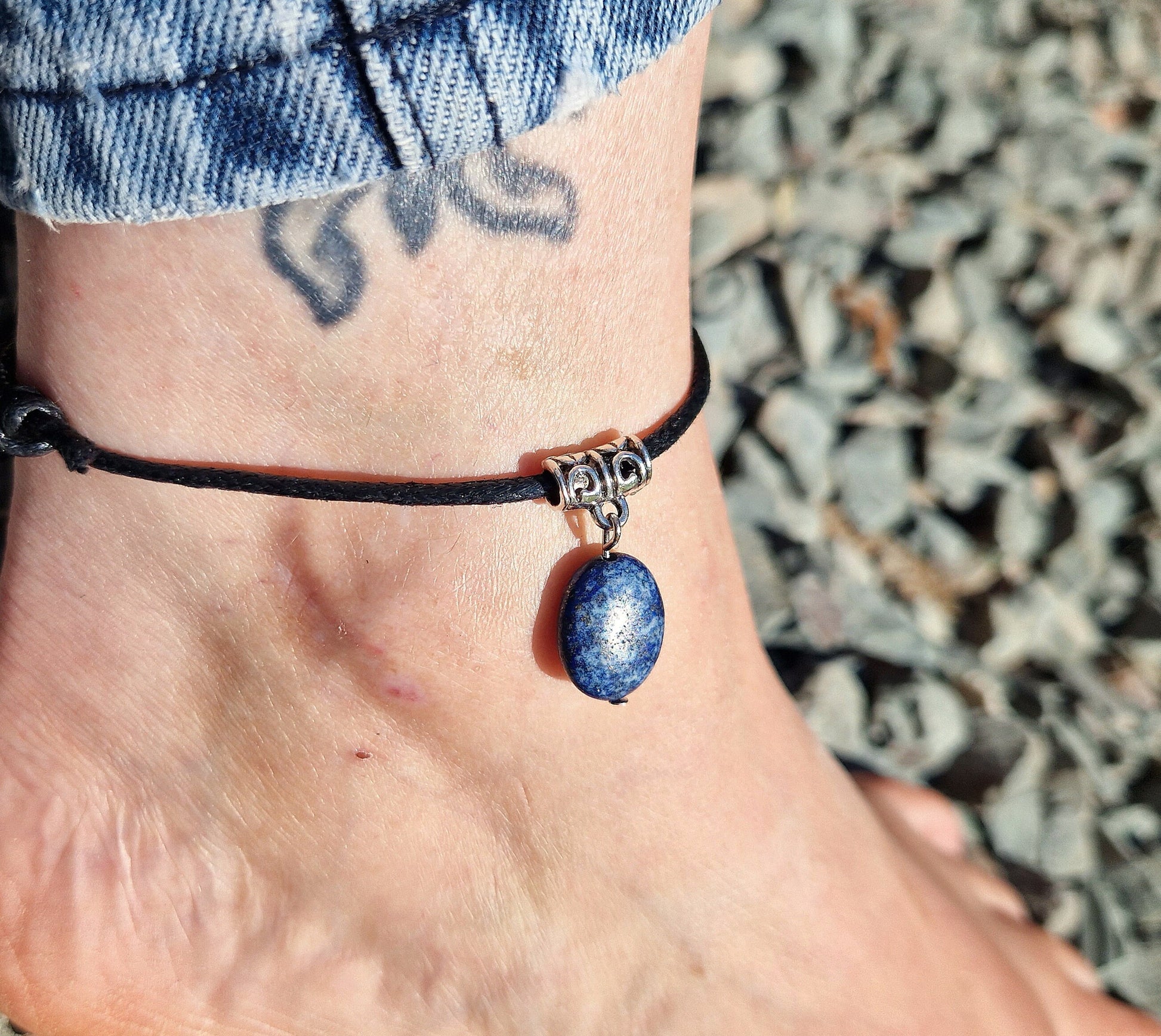 Beautiful lapis lazuli cord anklet. Lapis lazuli anklet / ankle bracelet for him / for her. Adjustable cord. Natural lapis lazuli