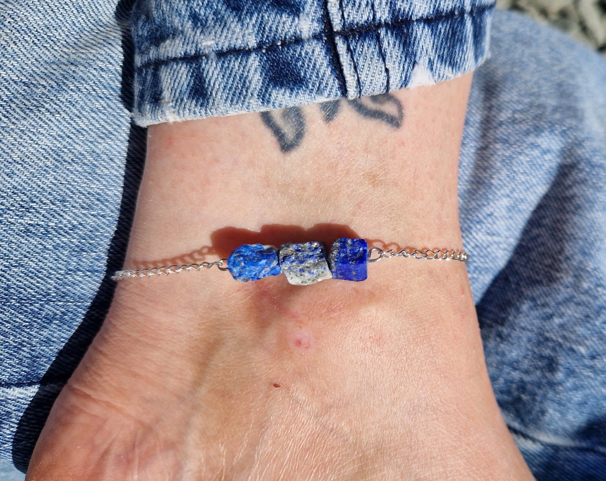 Beautiful lapis lazuli silver anklet. Lapis lazuli anklet / ankle bracelet for him / for her. Natural lapis lazuli. Raw lapis lazuli anklet
