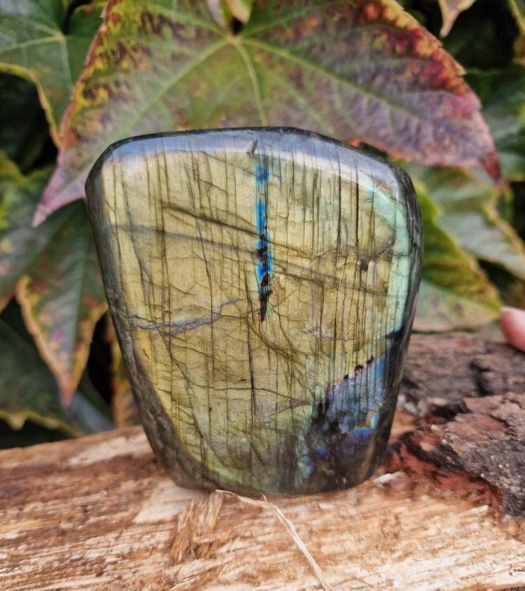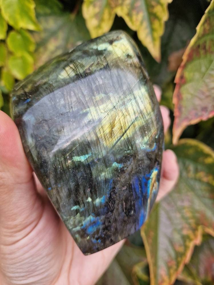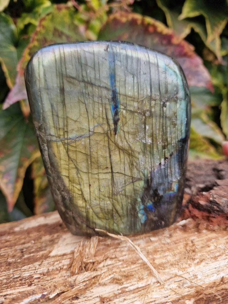 Beautiful large labradorite freeform yellow green and blue flash with rainbow. 895g