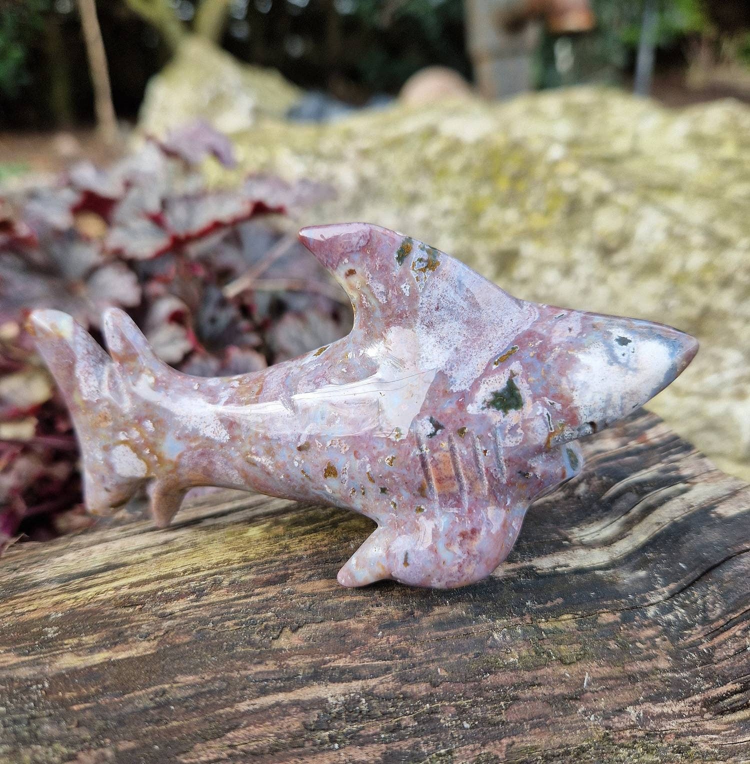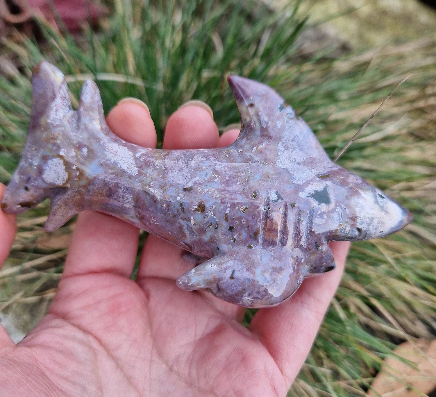 Beautiful ocean jasper shark carving. Shark crystal carving. Ocean jasper shark. Large shark crystal