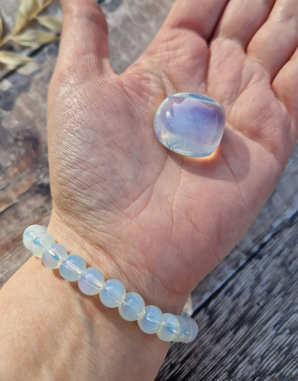 Beautiful opalite bracelet and tumble set. Opalite tumble stone. Opalite bracelet. Premium quality. Crystal bracelet and tumble set