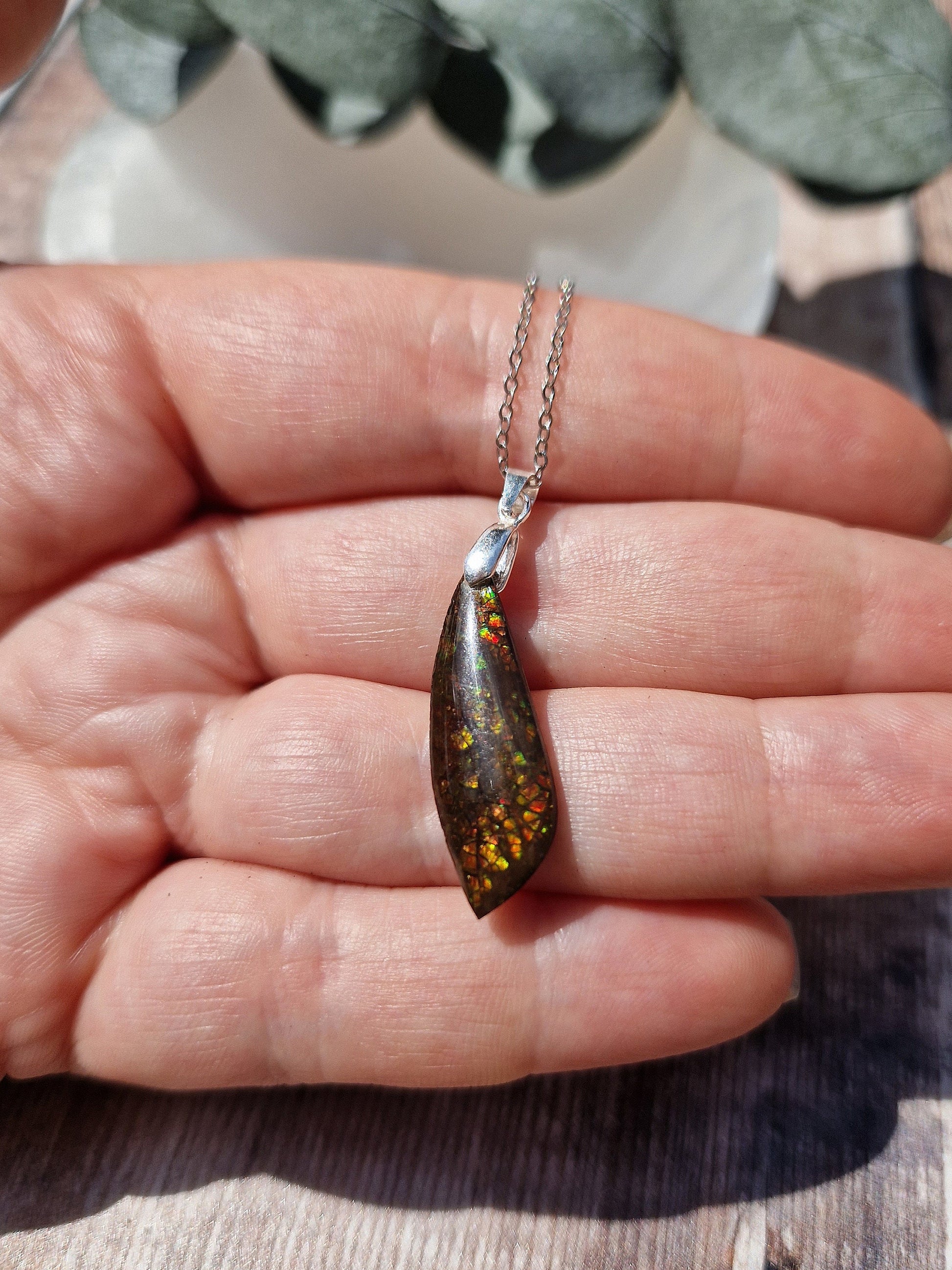 Beautiful rare ammonite necklace. 925 Sterling silver ammonite necklace. Rare and premium quality ammonite. Ammonite pendant