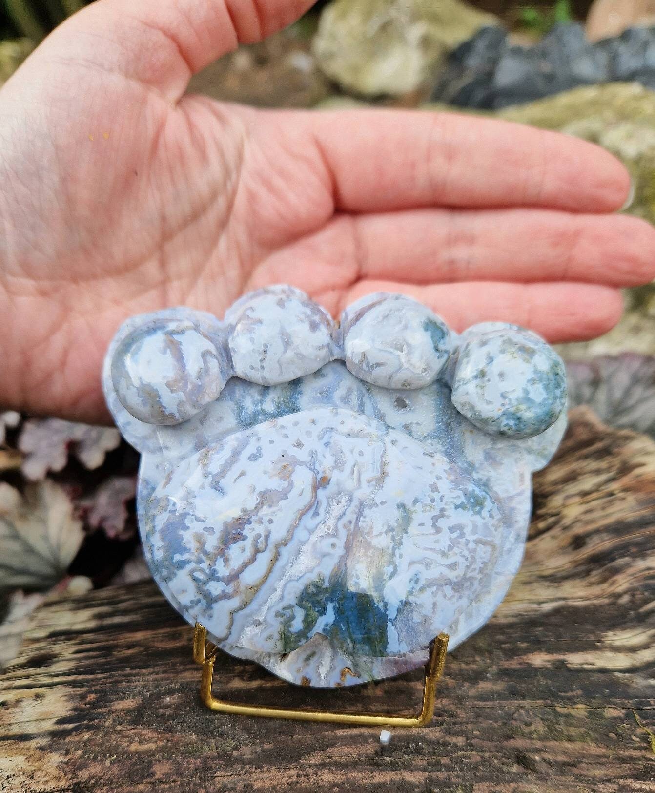We have a beautiful statement, high quality Moss Agate paw available.