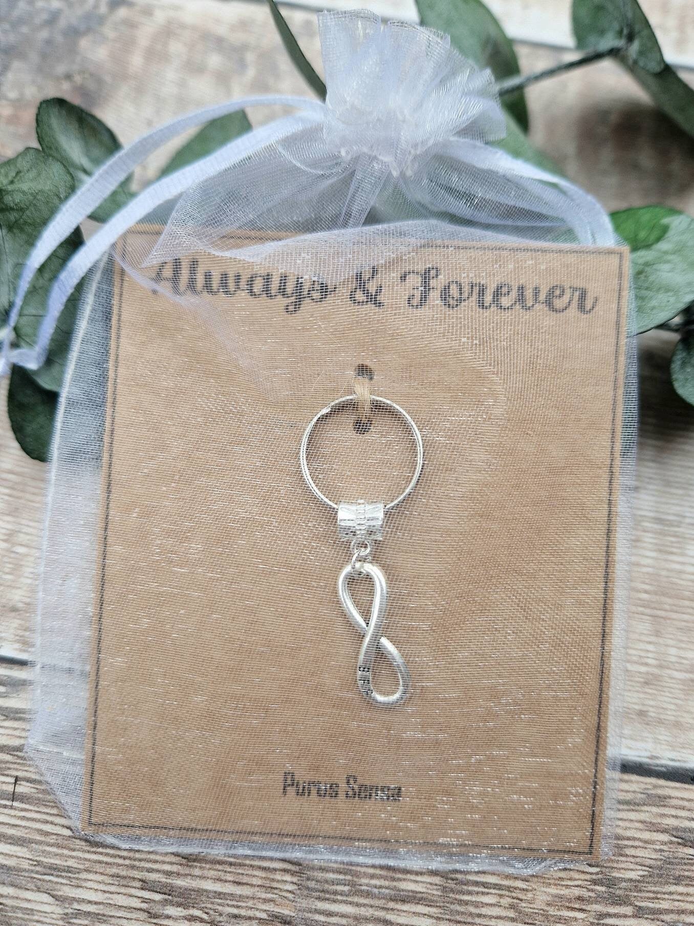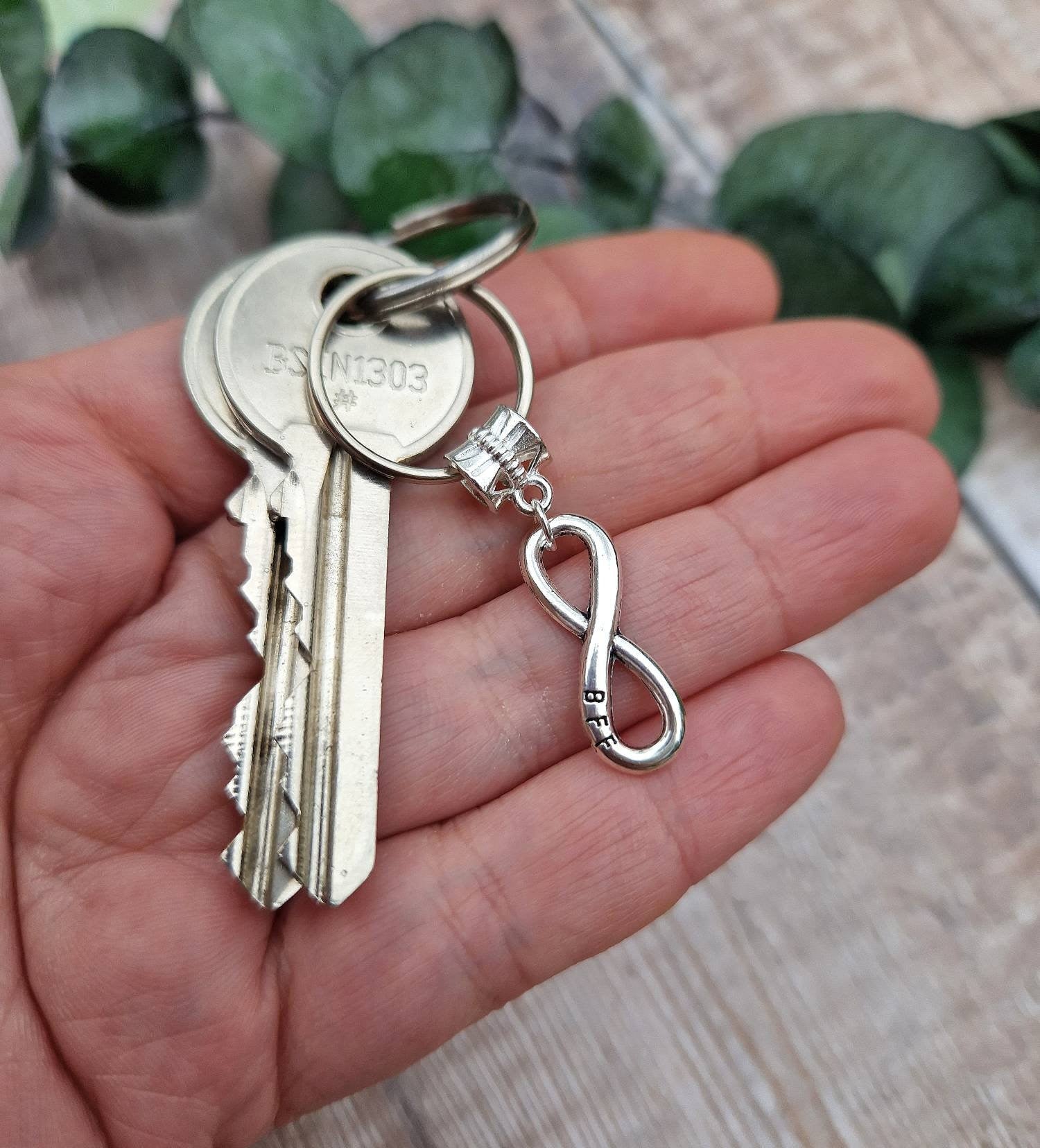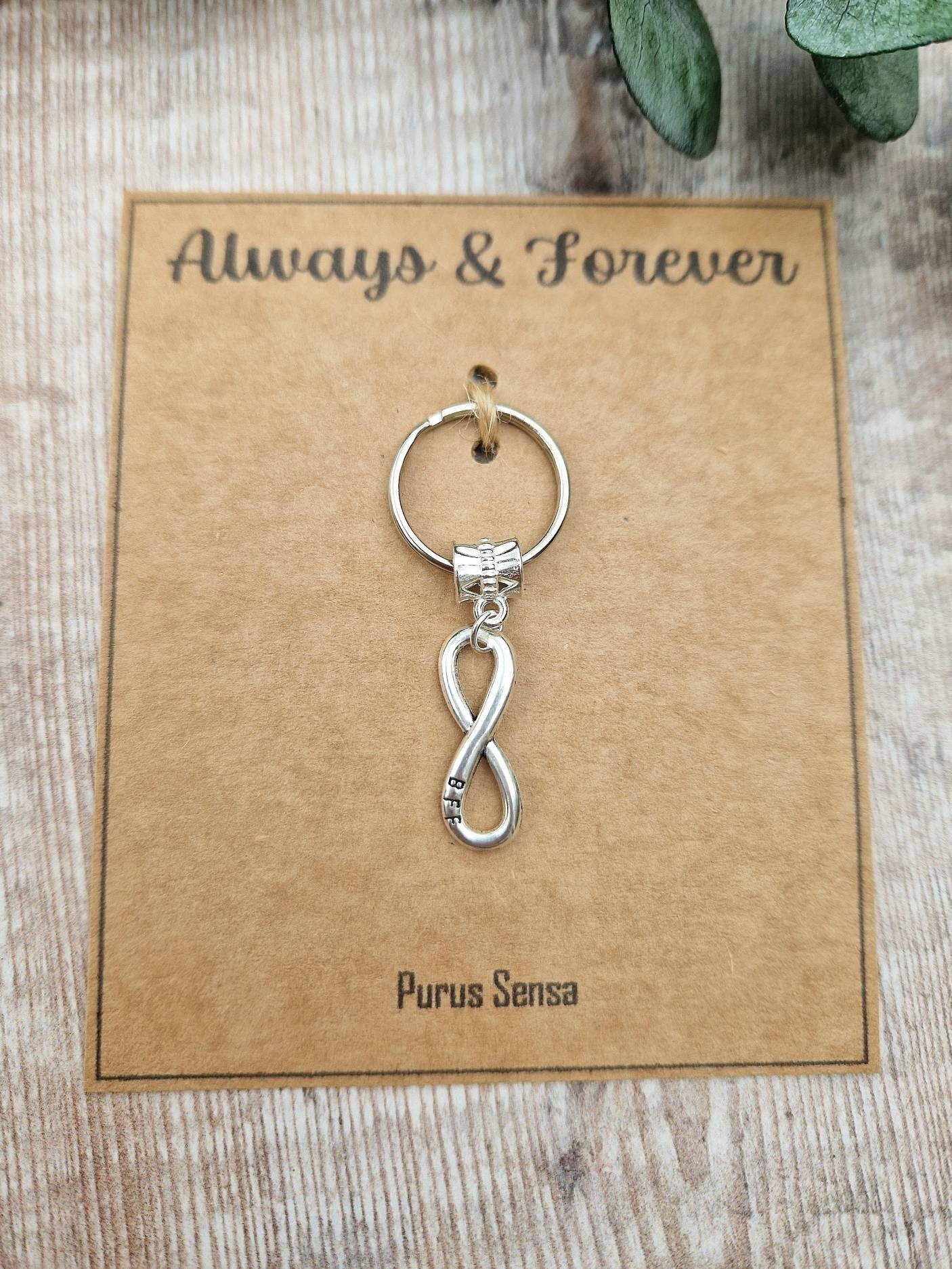 BFF stamped infinity keyring gift on card. Always & forever. Bestie gift best friend keyring. Bag charm.
