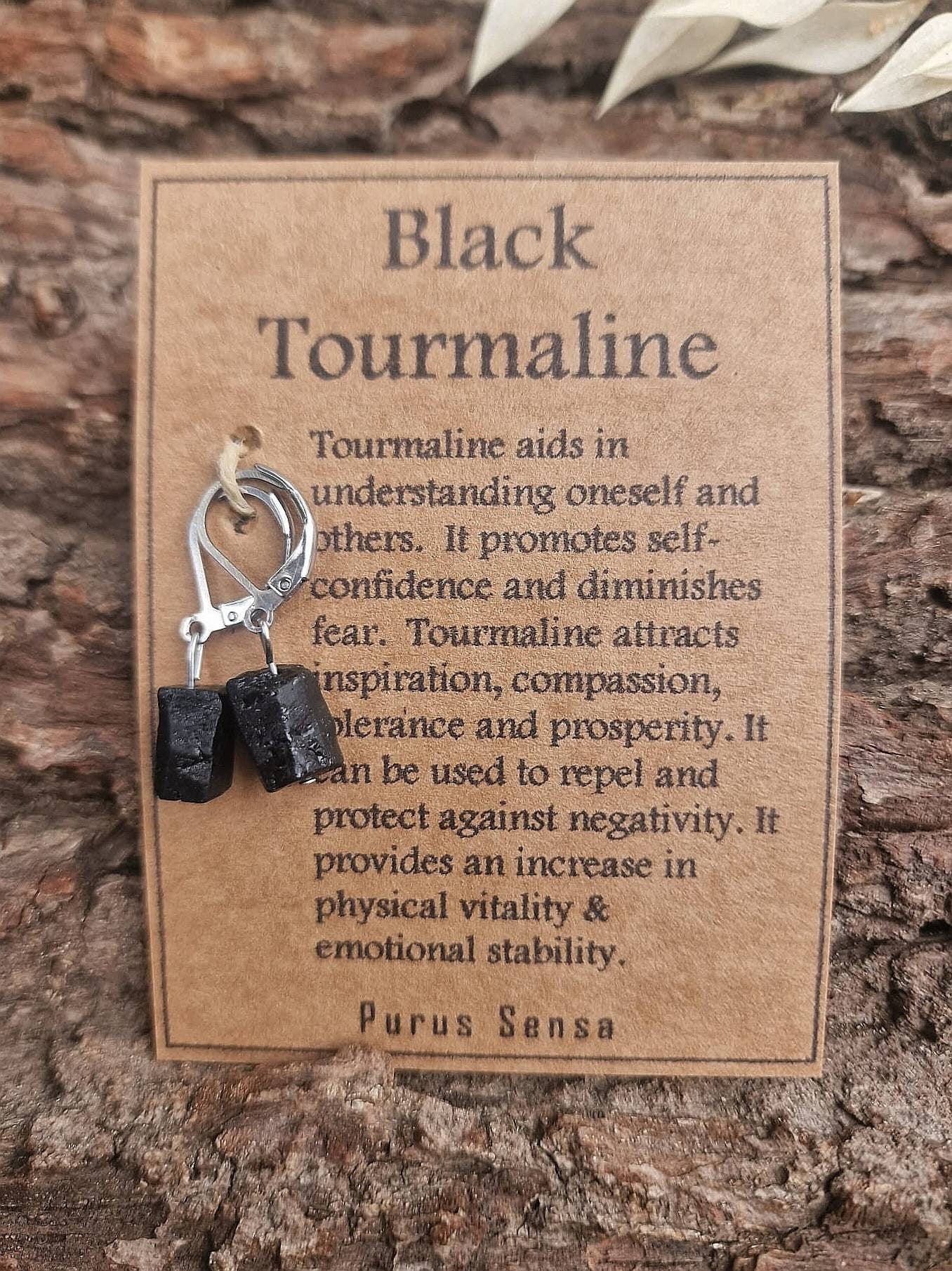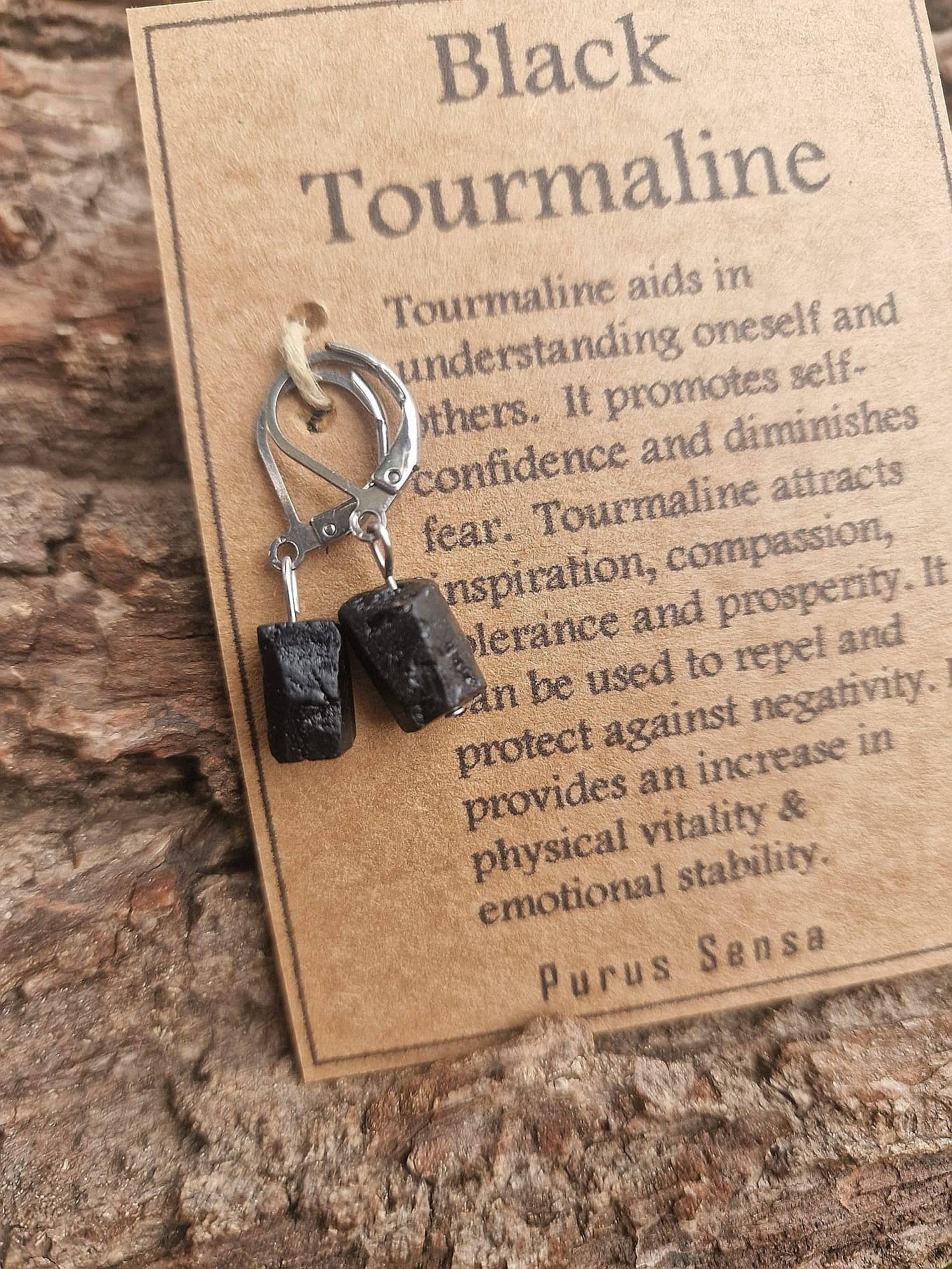 🔮Made with surgical steel huggie hoops these natural black tourmaline earrings are so comfortable for even the most sensitive skin.