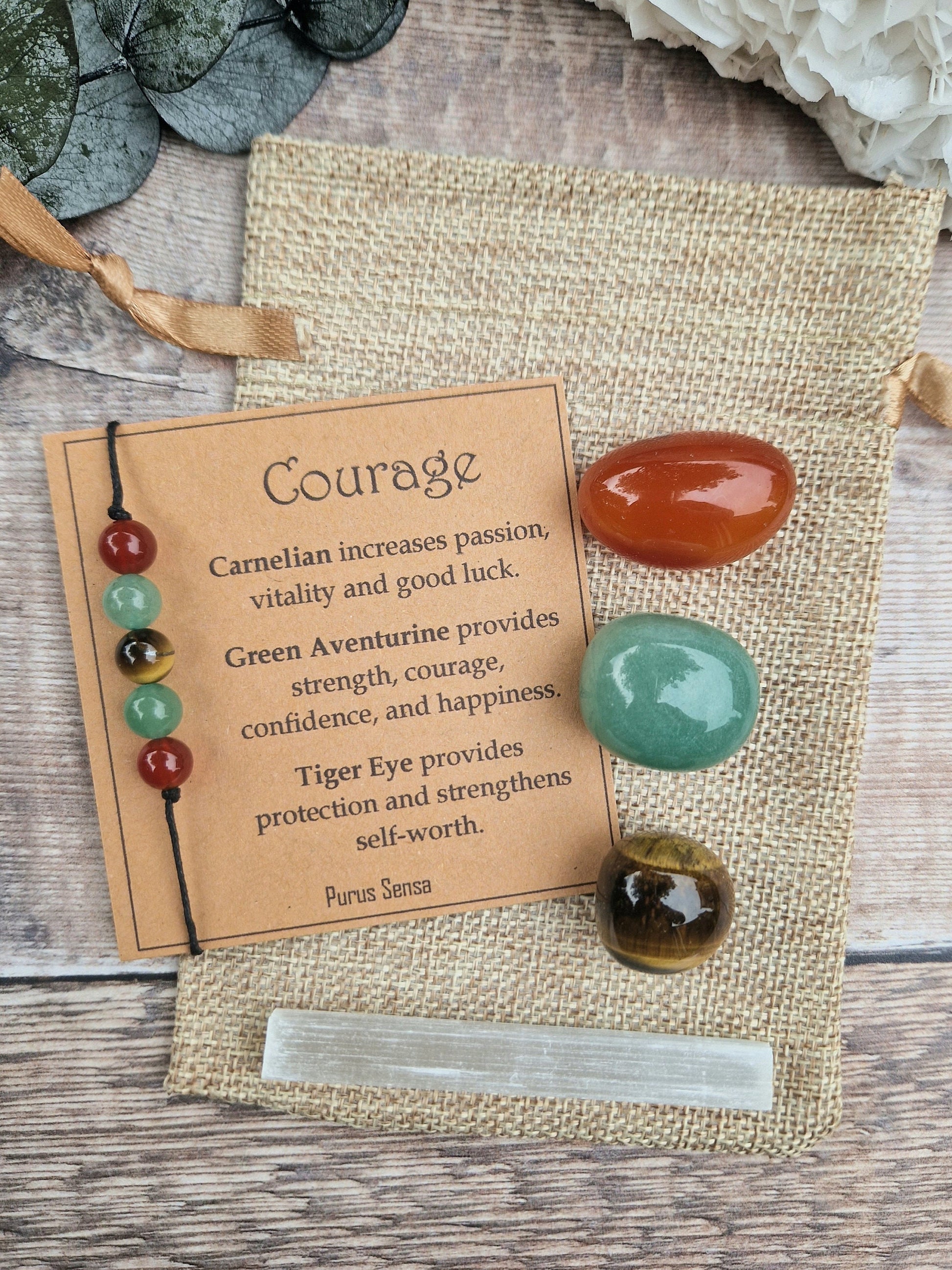 COURAGE crystal bracelet / anklet gift set. Crystals for confidence. Gift for courage / confidence / anxiety / self esteem / Crystal gift box for courage.