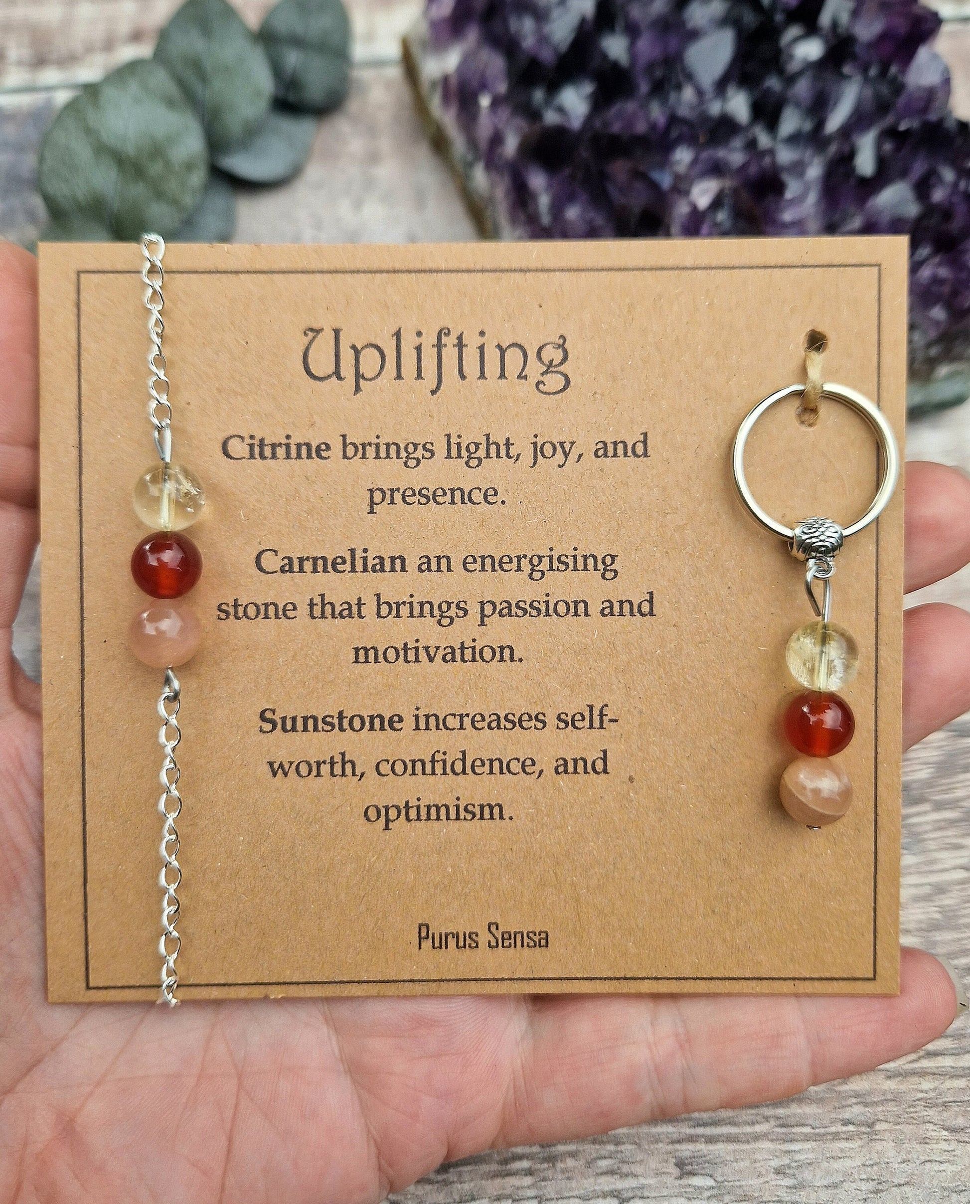 Crystal bracelet and keyring set. Keychain. Crystal keyring. For happiness / uplifting / thinking of you / depression support. Crystal gift.