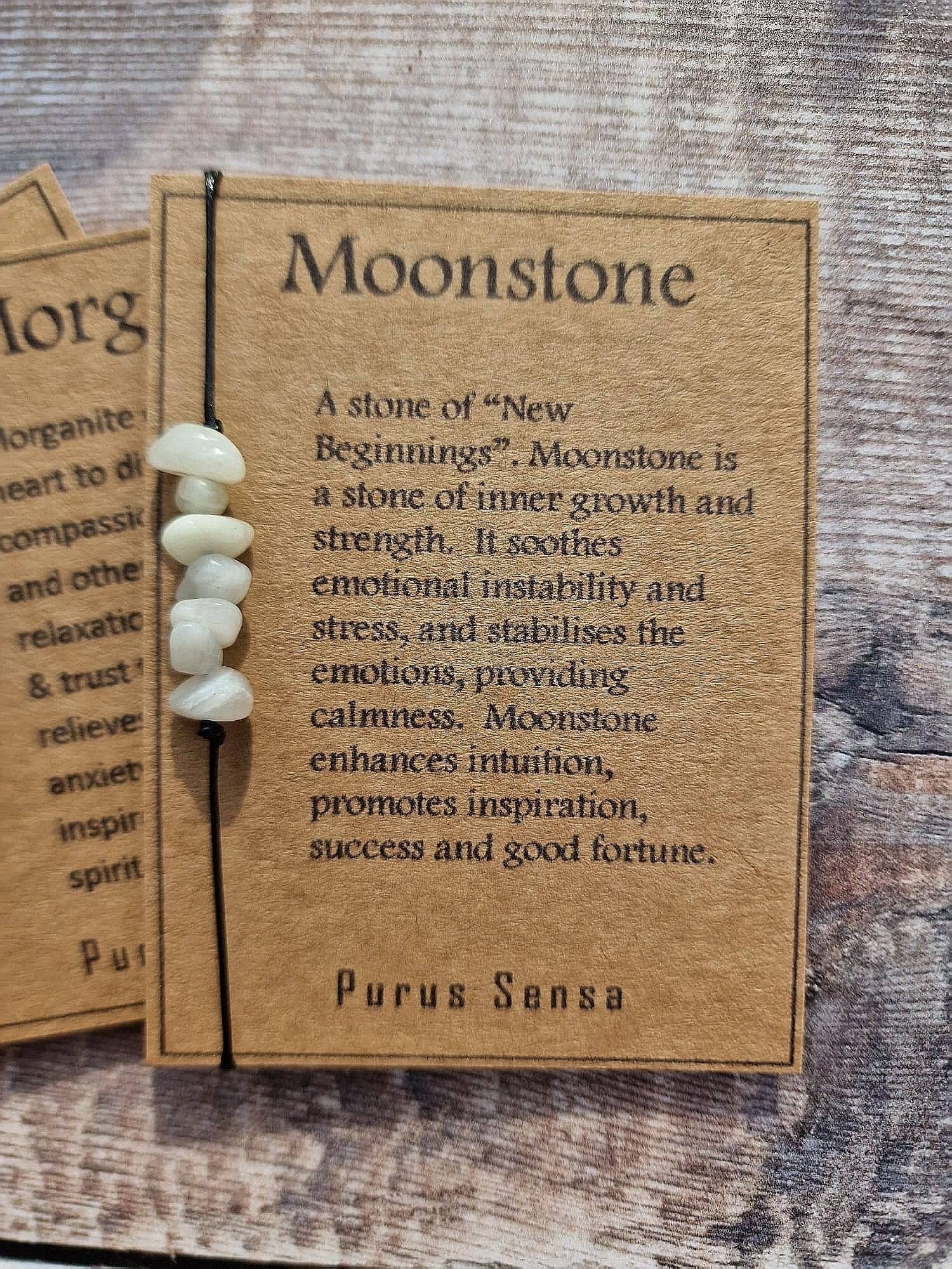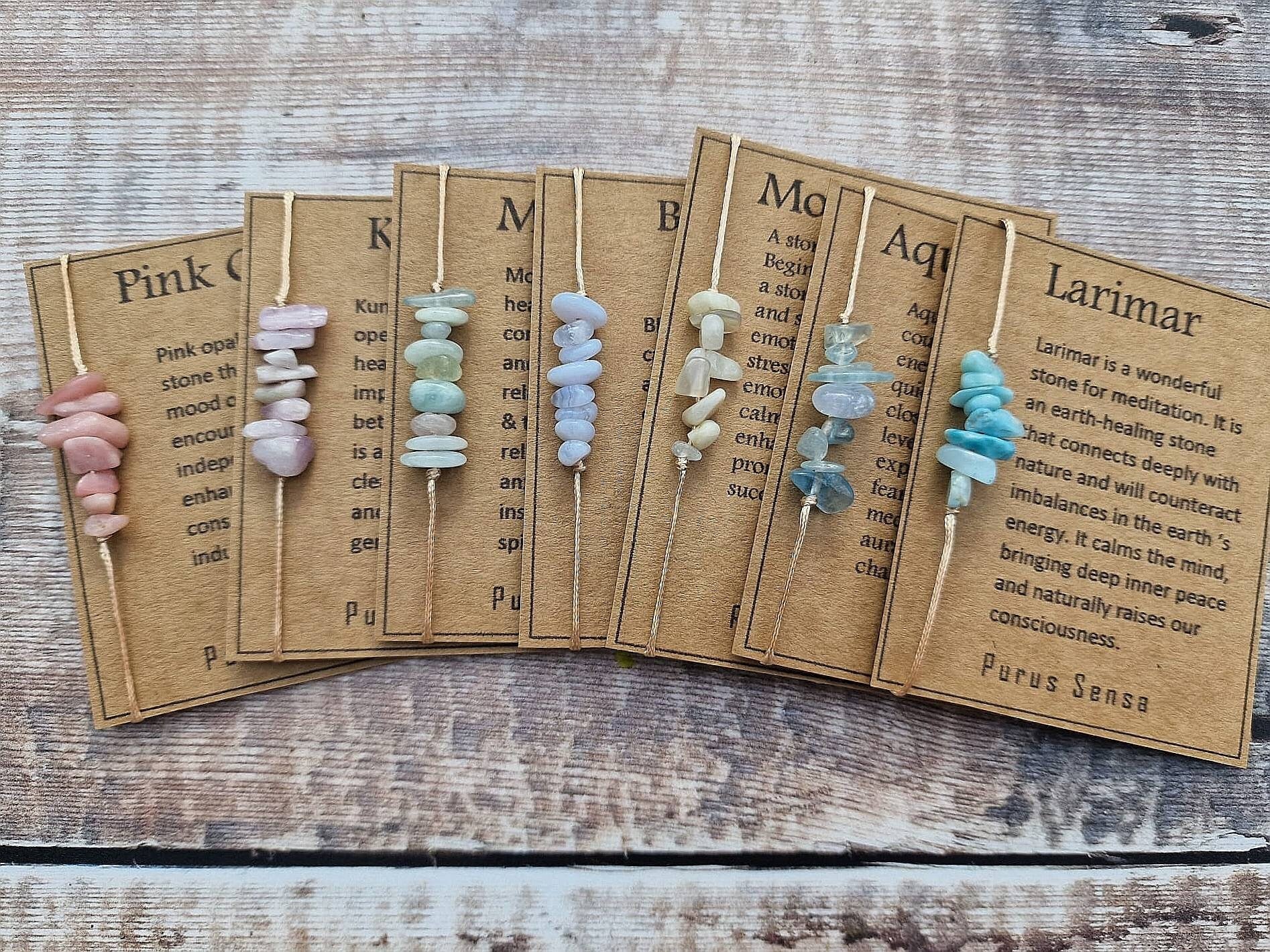 Crystal bracelet. Crystal cord adjustable bracelet  on Descriptive Card. Minimalistic gemstone bracelet. Morganite aquamarine + more