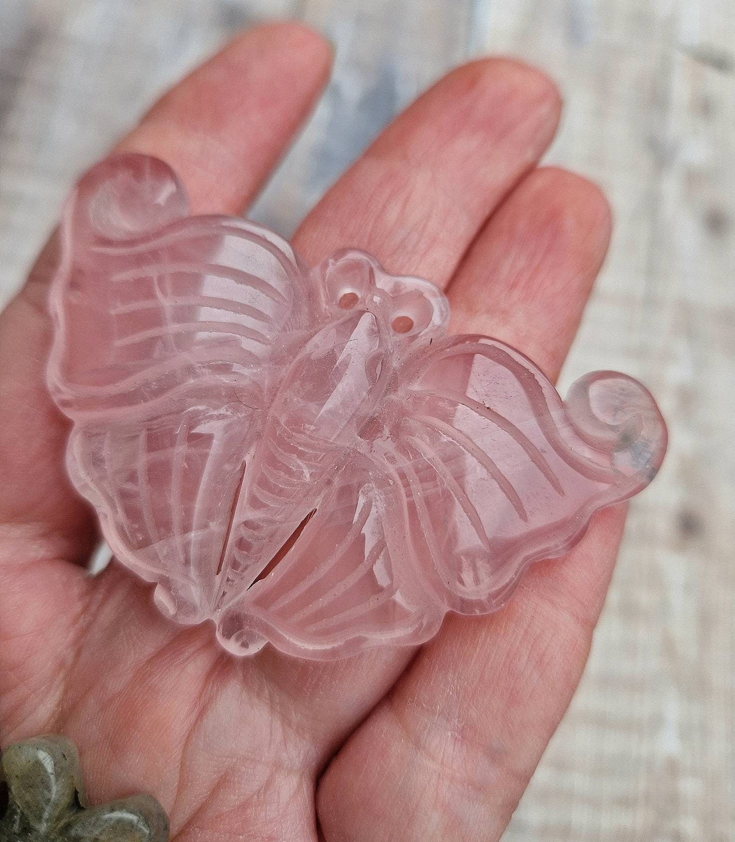 Premium quality crystal butterfly carving Rose quartz, Labradorite butterfly.