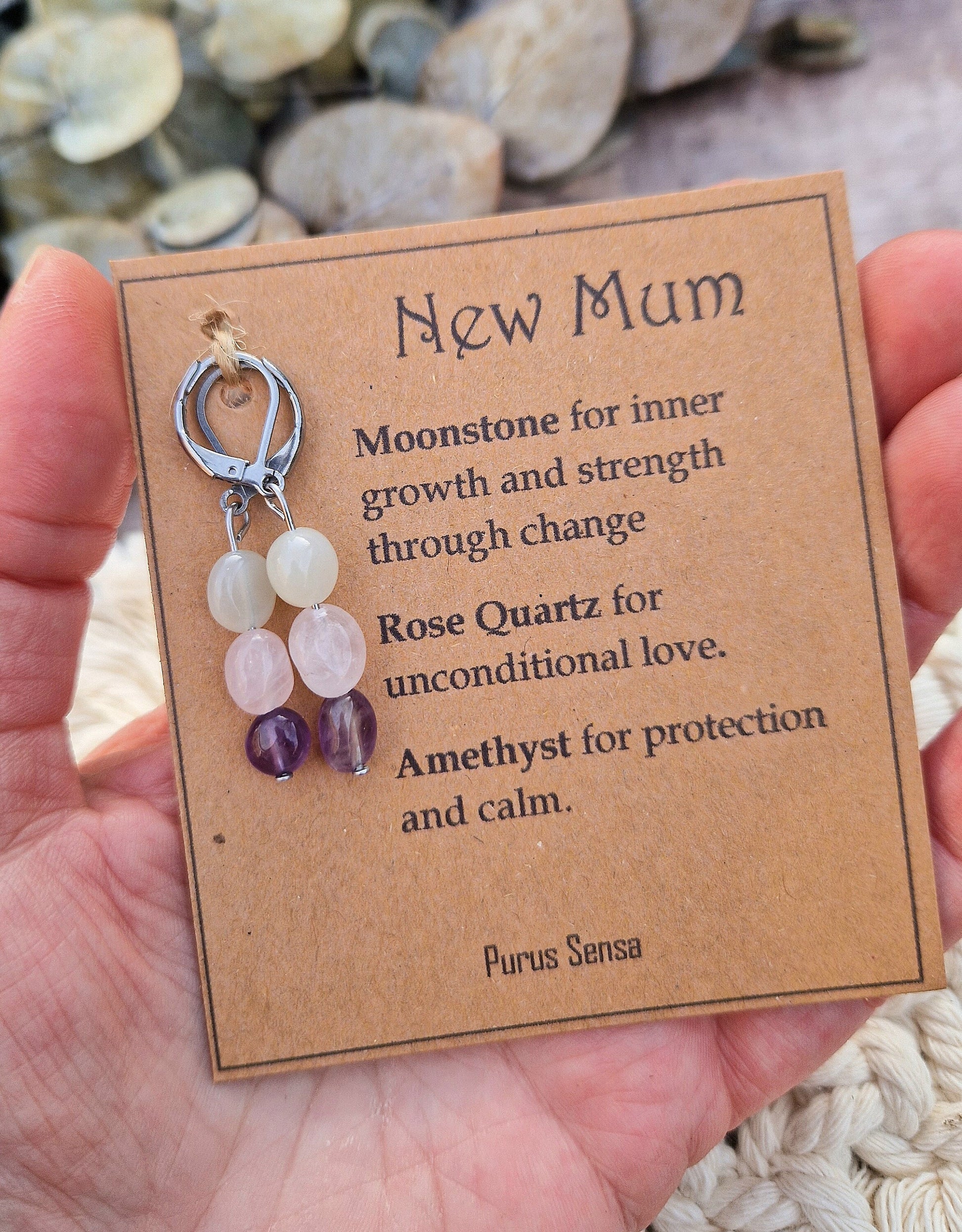 Crystal earrings for a new mum. New mum gift. Congratulations. Safe arrival. Gift for new mum. Crystals for new mum. Mum to be. Baby shower