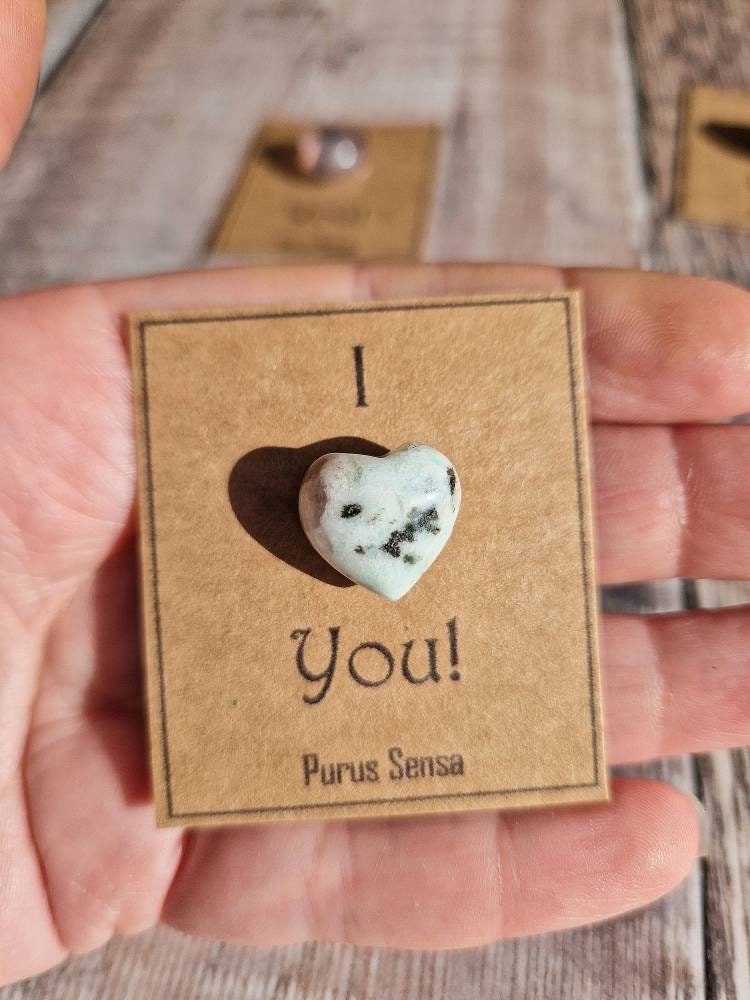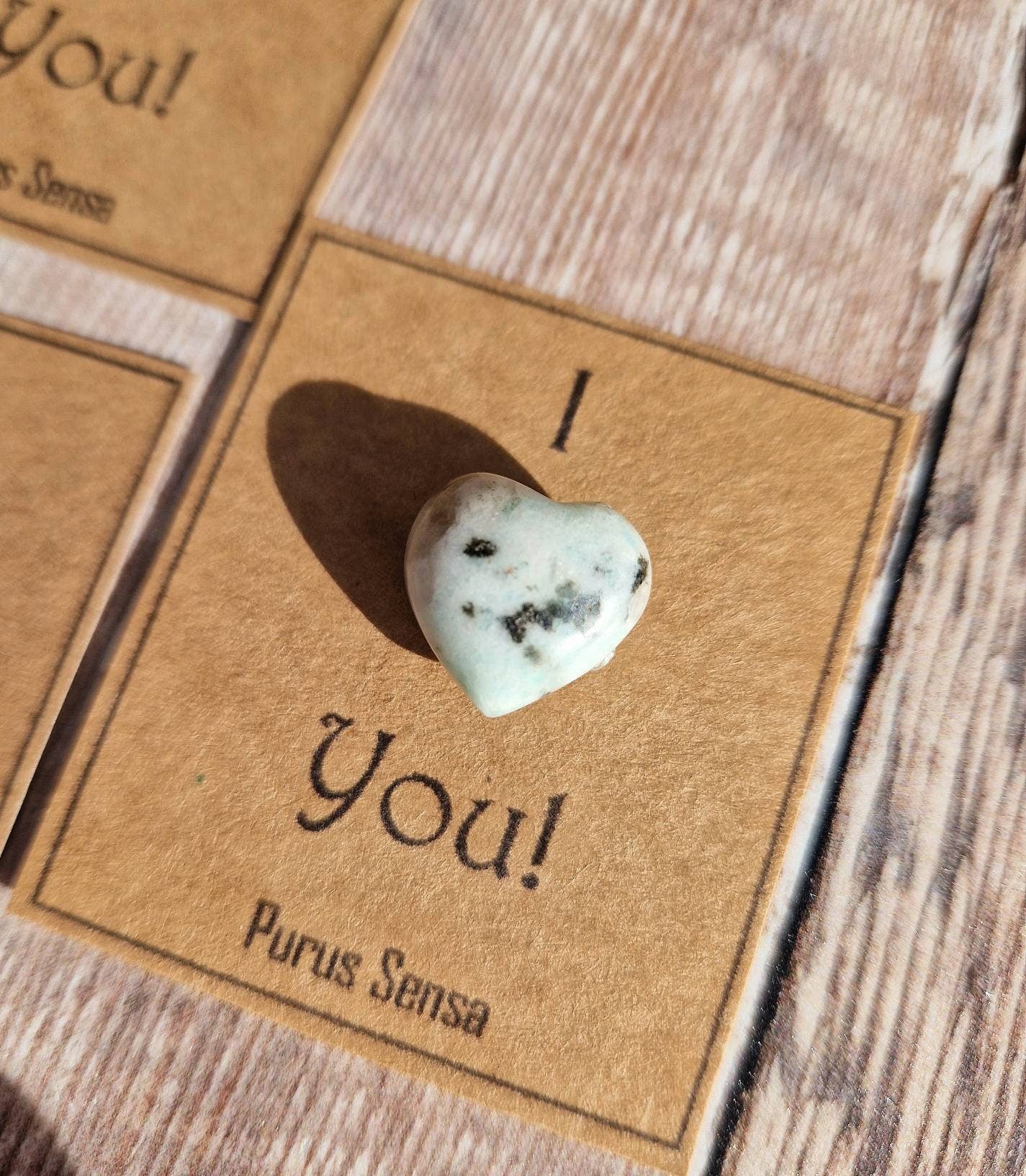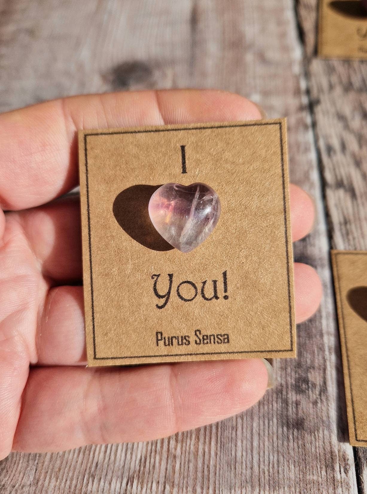 A genuine mini crystal heart crys on a gift card to read "I 💚 you!" ✨️