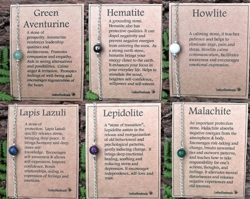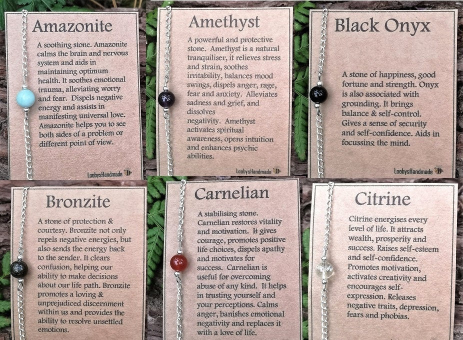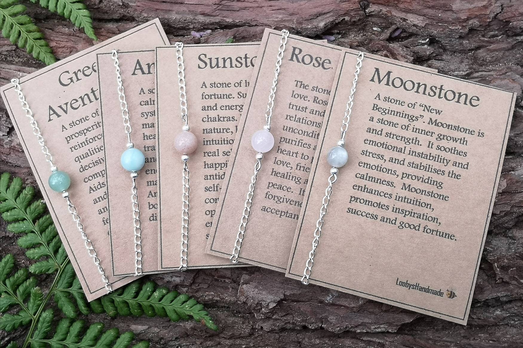 Crystal healing bracelet. Genuine crystal on Descriptive Card. Minimalist gemstone gift. Silver crystal Bracelet. Genuine Healing Gemstones