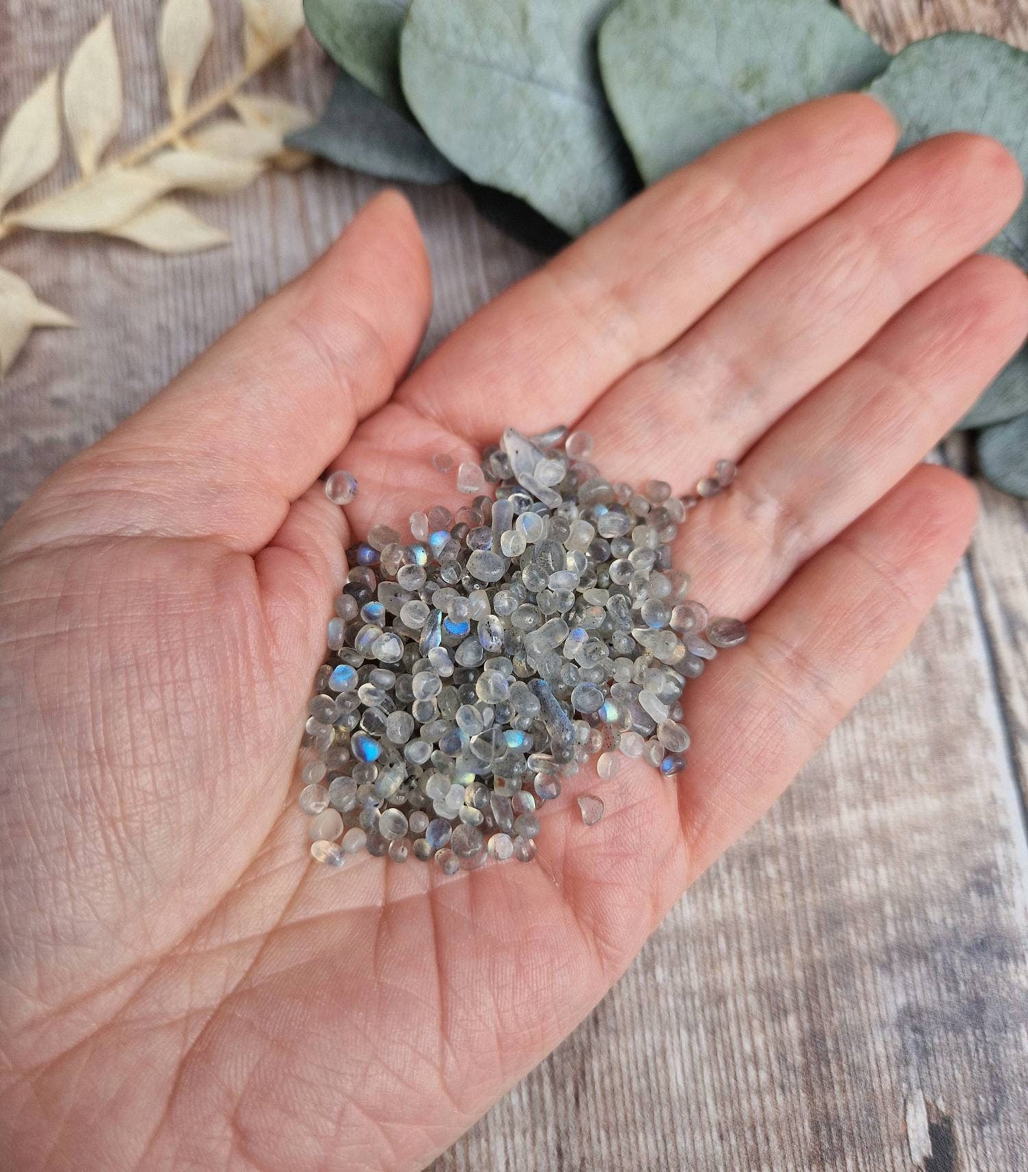 These are genuine, premium quality labradorite chips. The gift is designed so the bottle can be safely removed from the card.