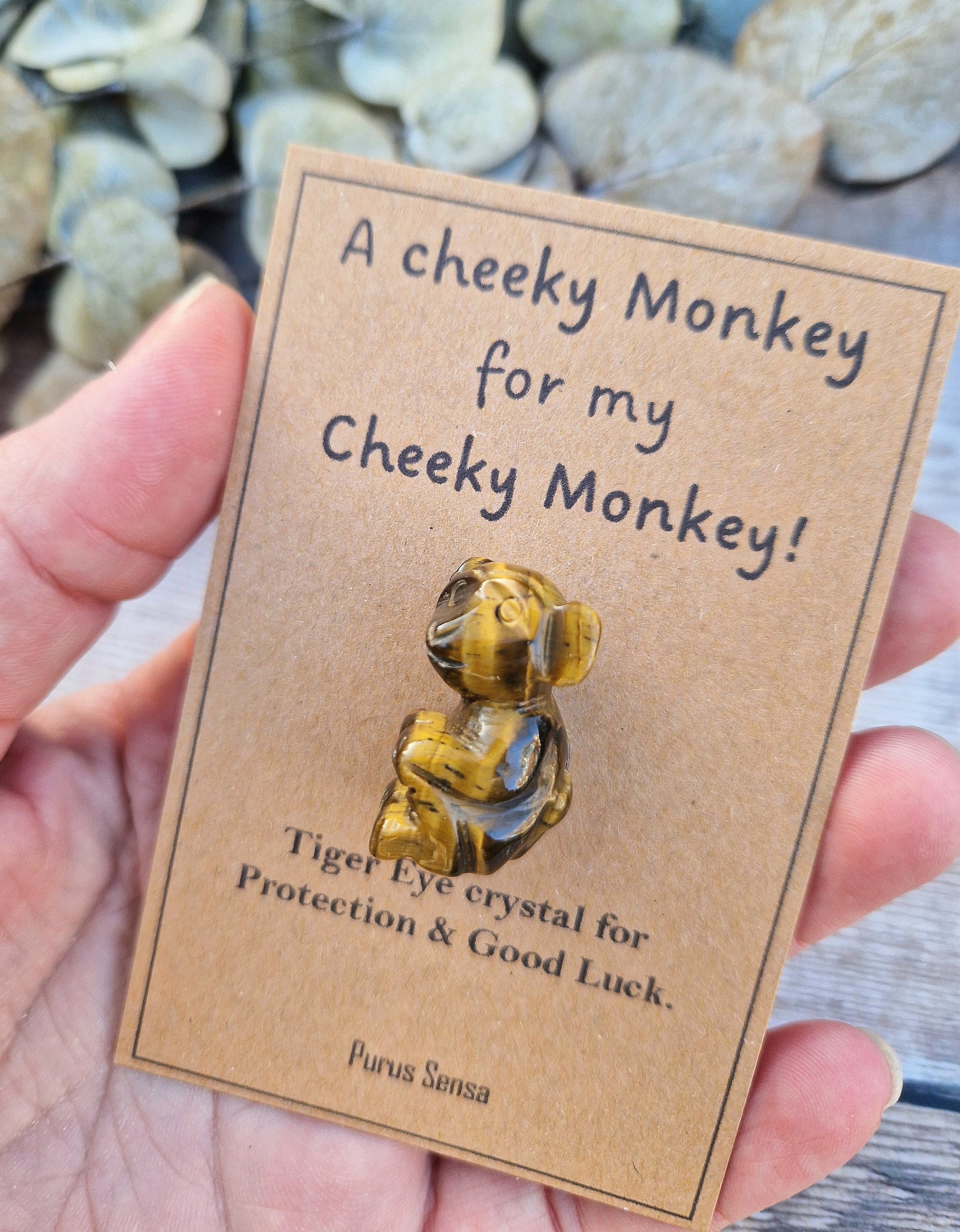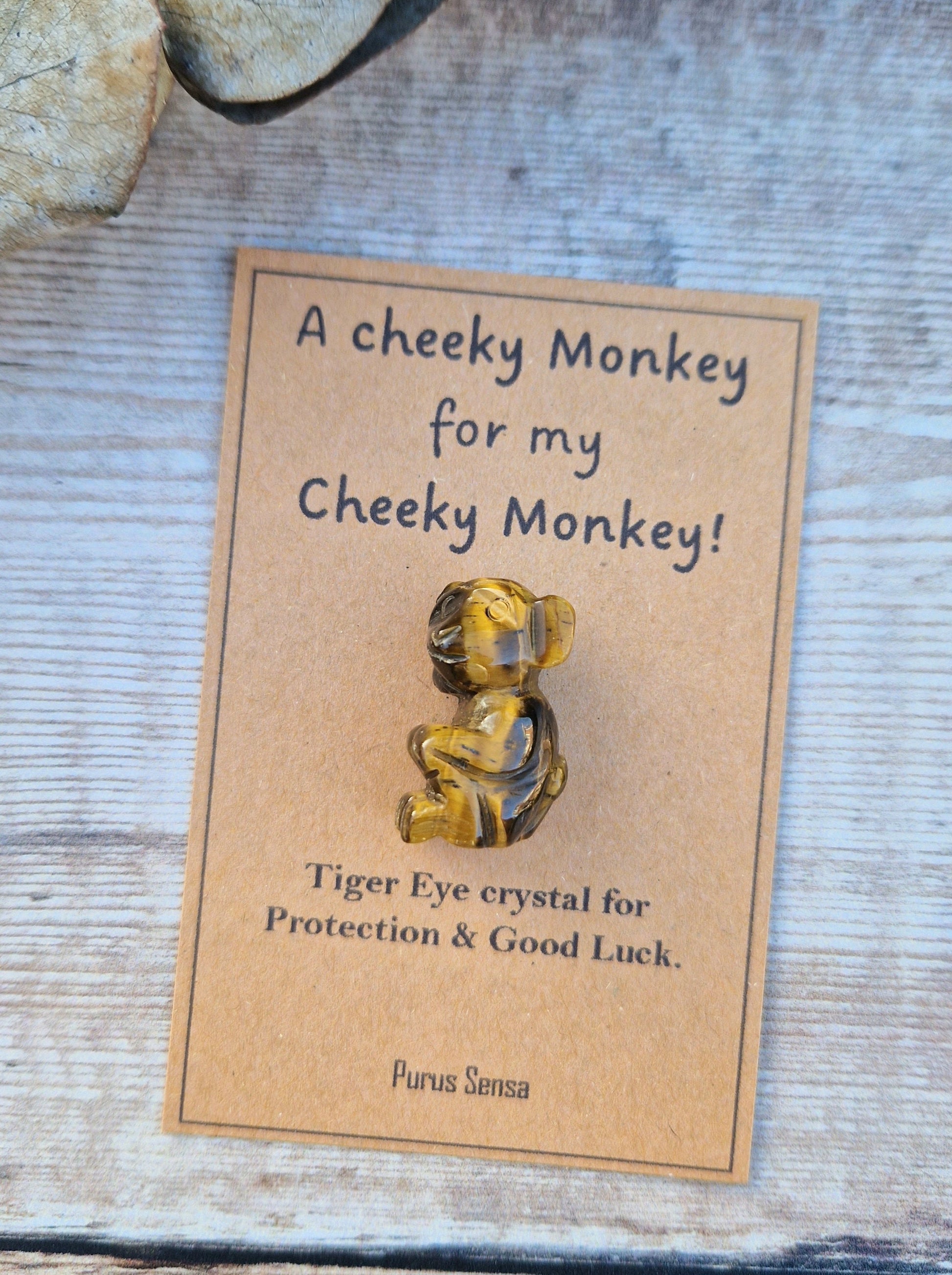 Cute cheeky monkey gift. Protection. Good luck. Funny. Keepsake for him / her crystal gift. Crystal monkey. Tiger eye gift