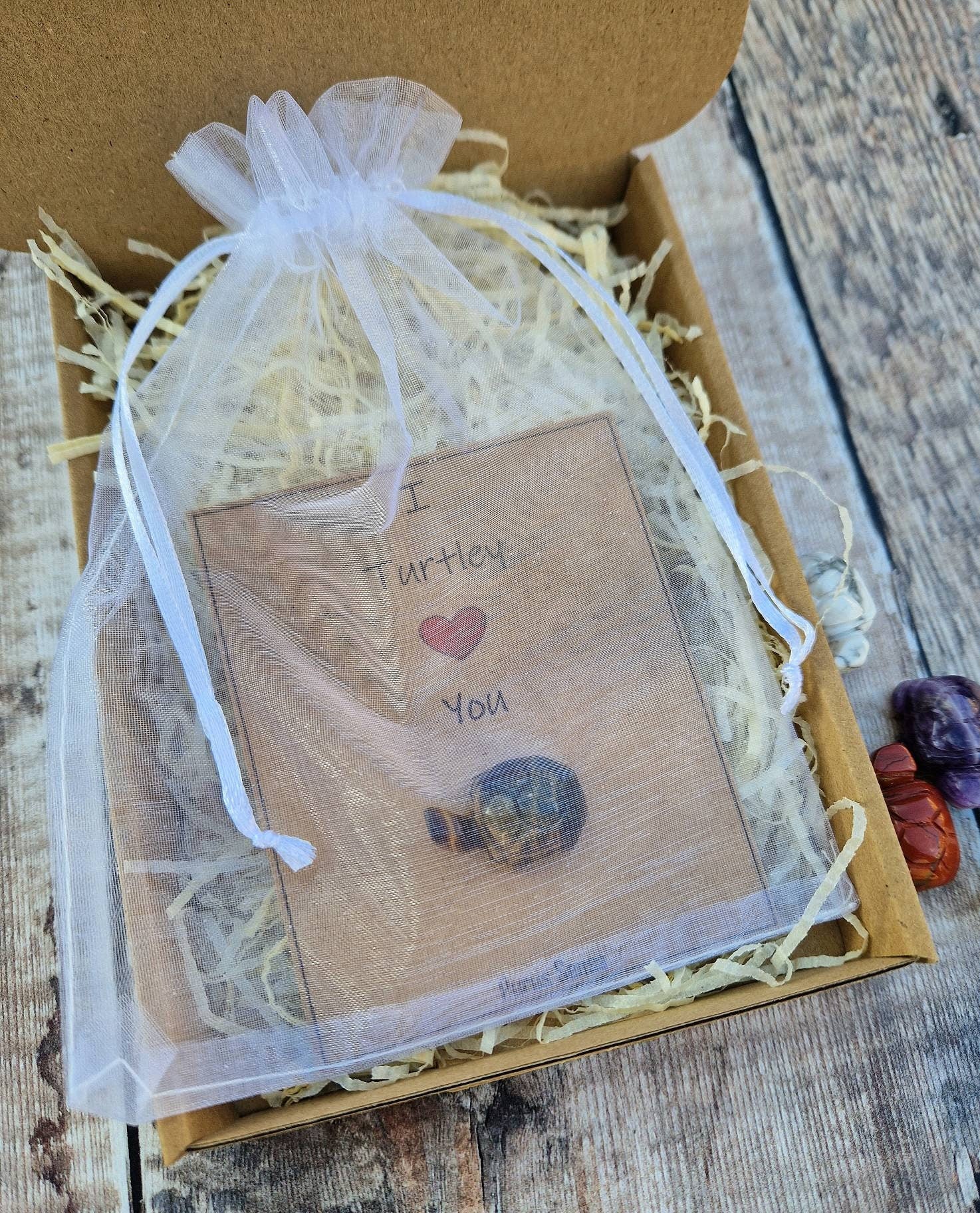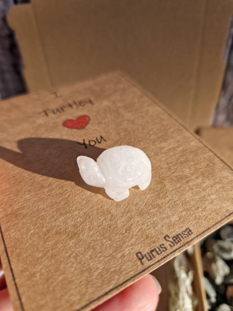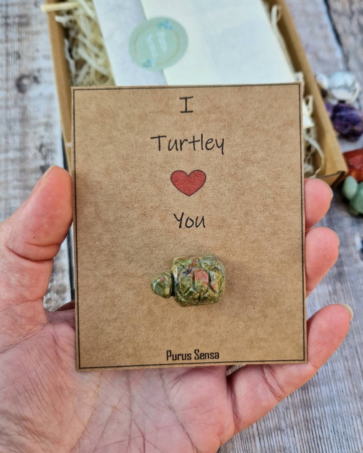 Made with a premium quality, natural crystal turtle on recycled card 🐢✨️
