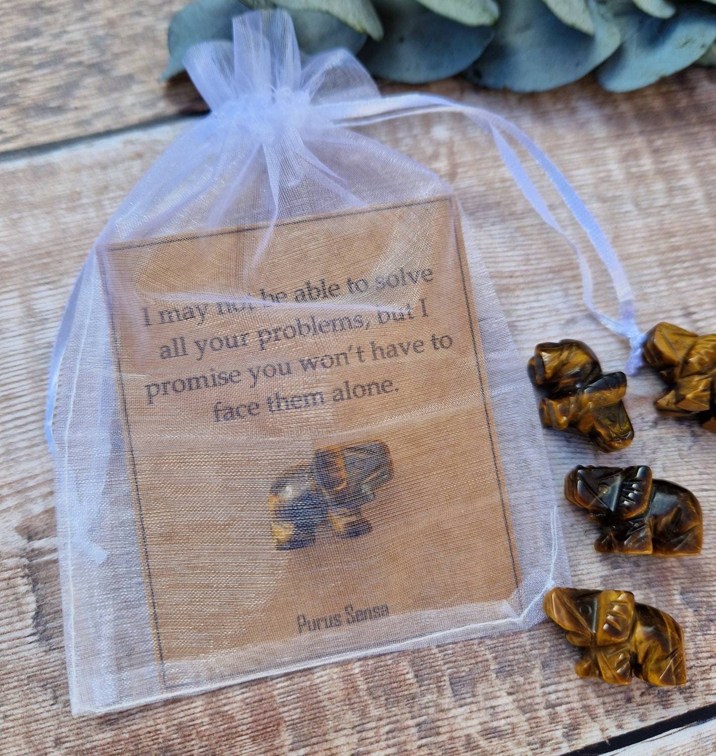 Cute elephant gift. Elephant crystal. Thinking of you. Friendship gift. Here for you. Miss you. Tiger eye elephant.