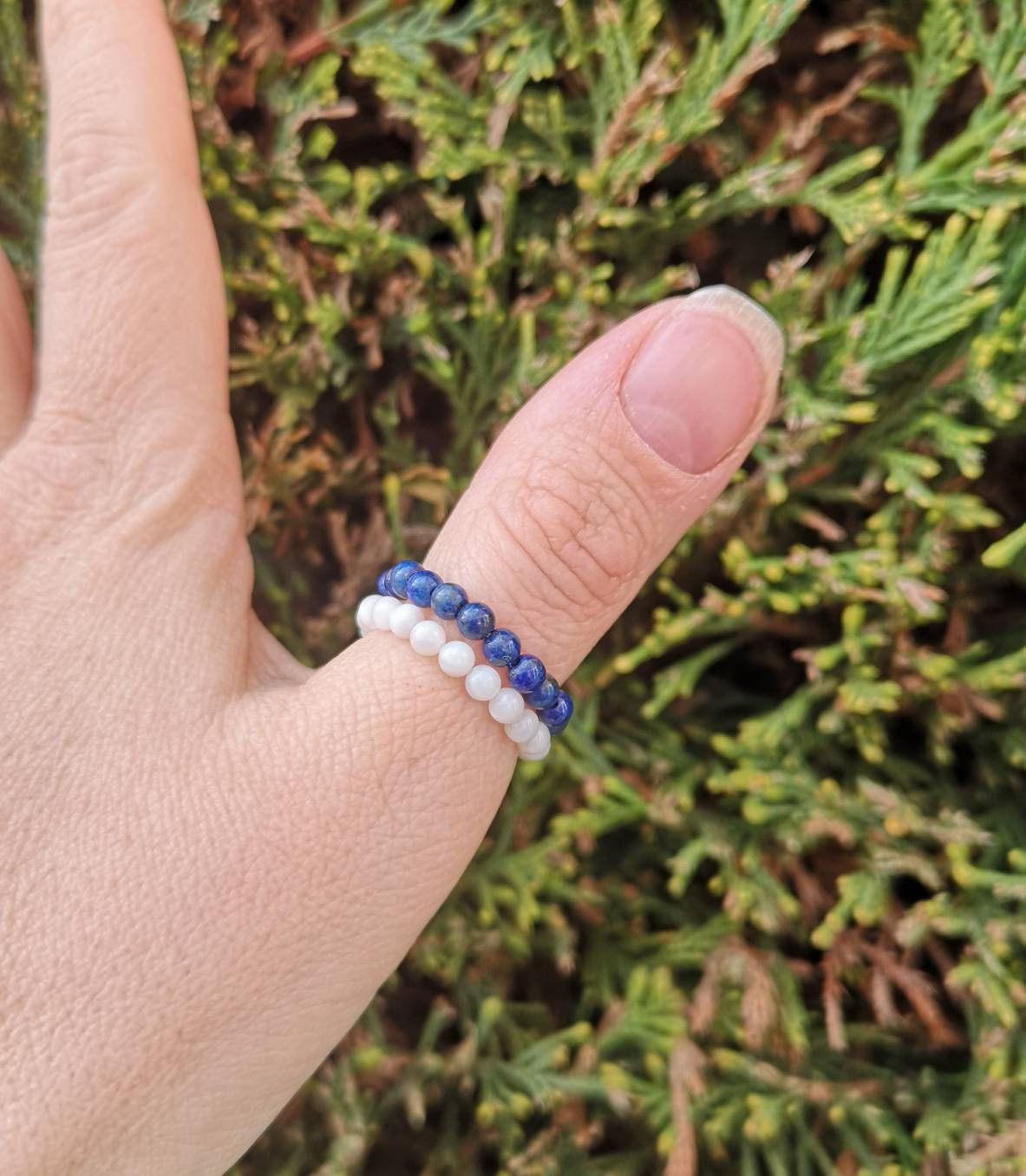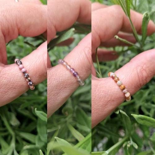 Genuine Healing Gemstone Ring Stackable crystal Chakra Rings Small Stretch Gemstones