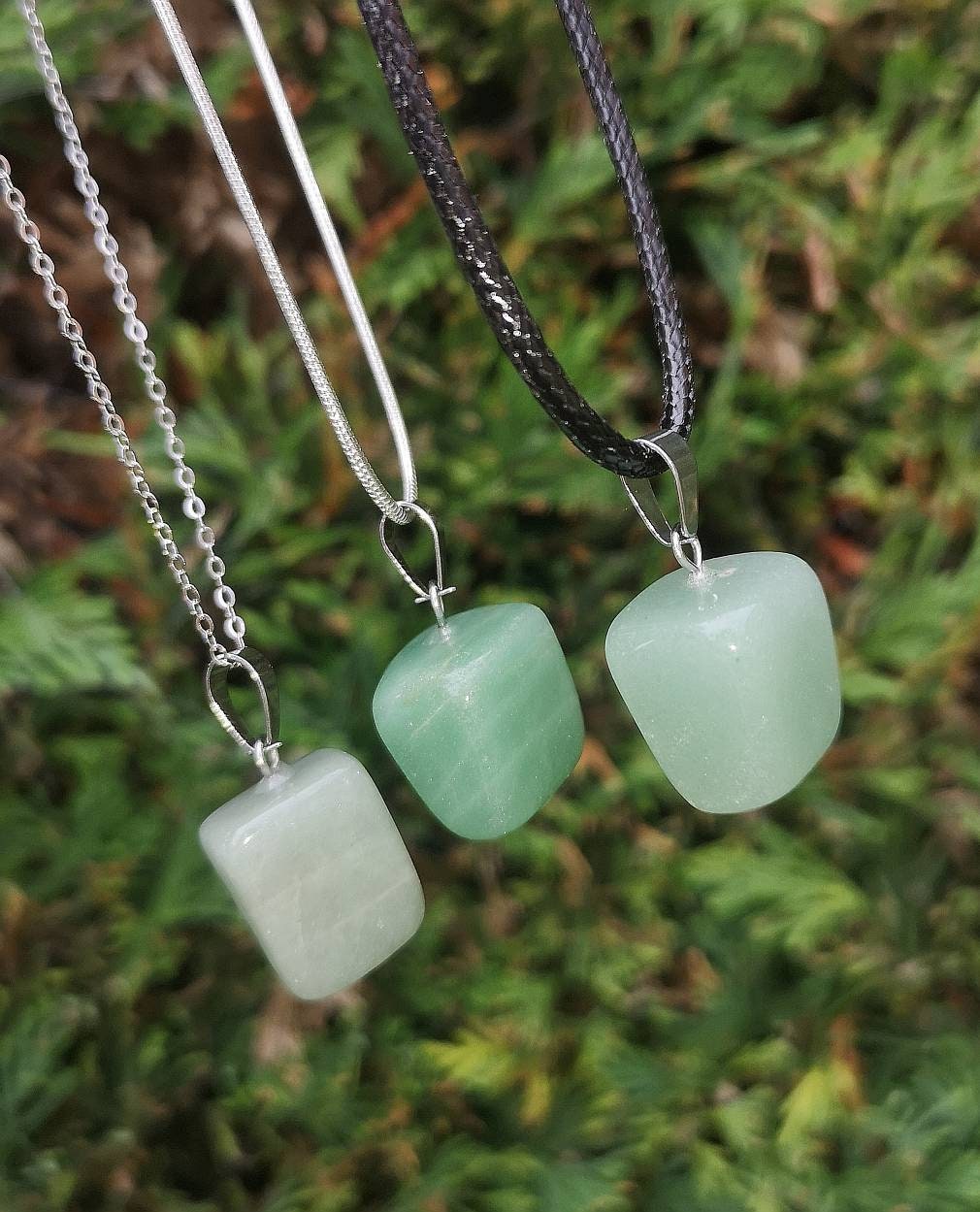 Green Aventurine necklace. Healing Crystal pendant necklace on silver or black cord. Natural gemstone
