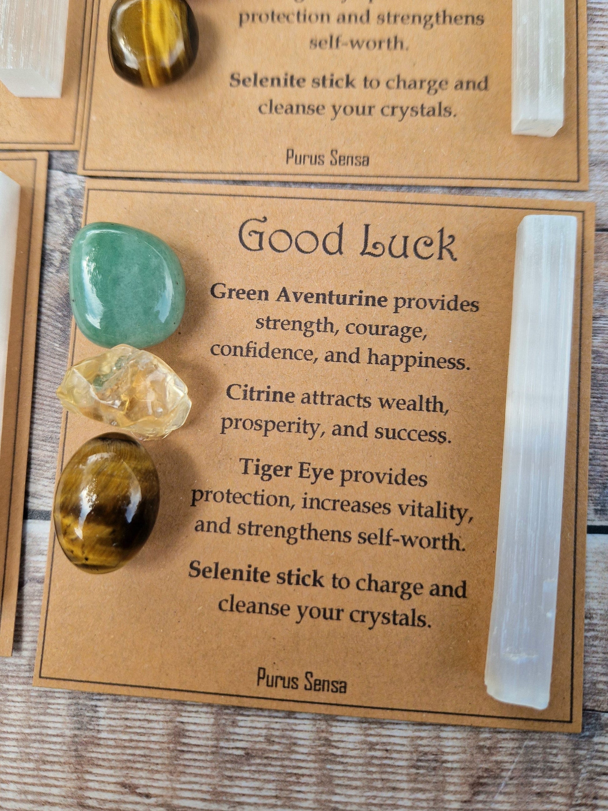 Each crystal set is made up of high quality, natural crystals. The crystals can be removed safely from the card to keep in a pocket etc and you can use your selenite stick to keep them cleansed and charged ✨️