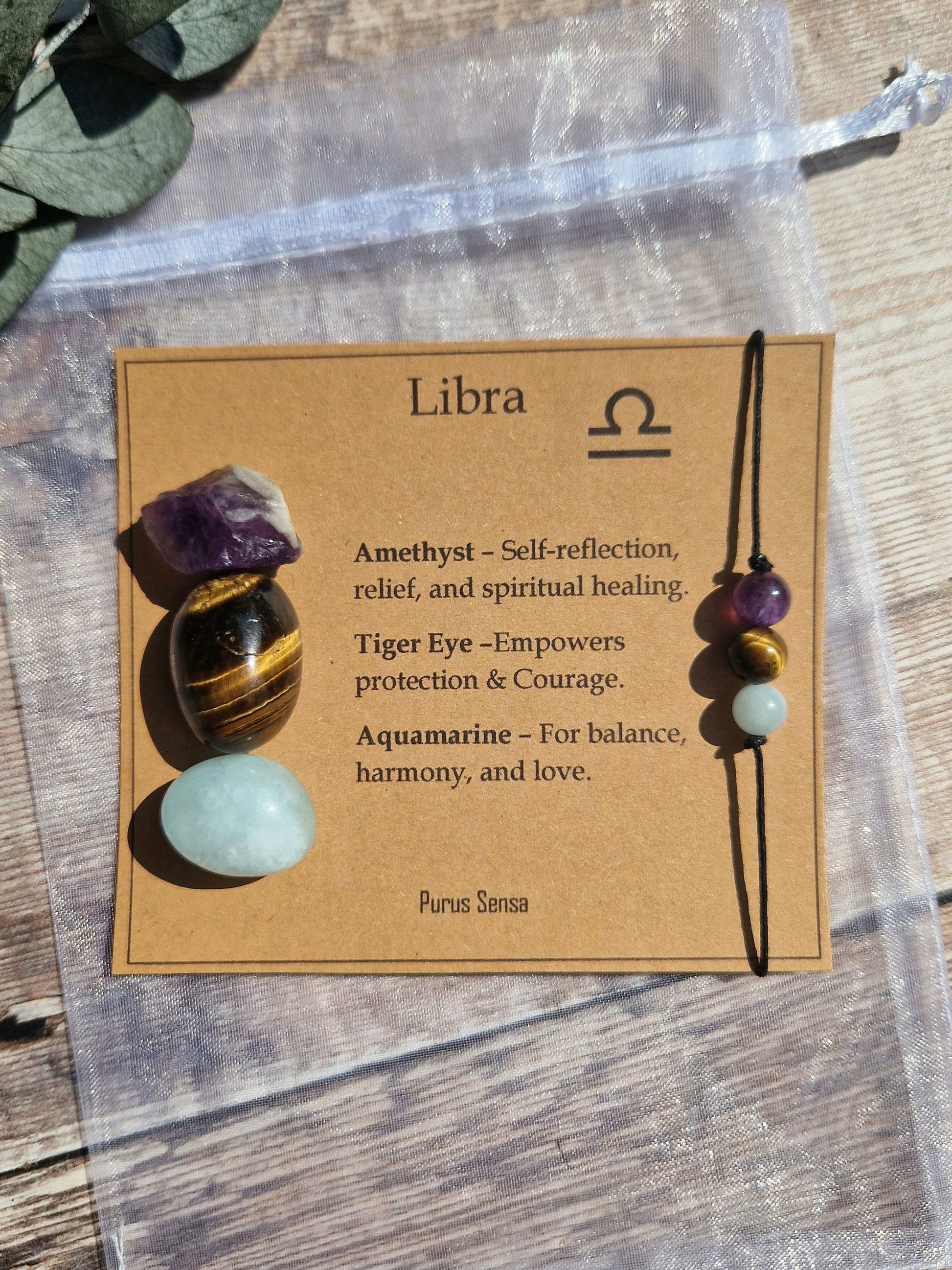 LIBRA crystal set. Libra gift. Crystal gift for libra. Zodiac crystal set on a descriptive card. Libra bracelet and crystal set.