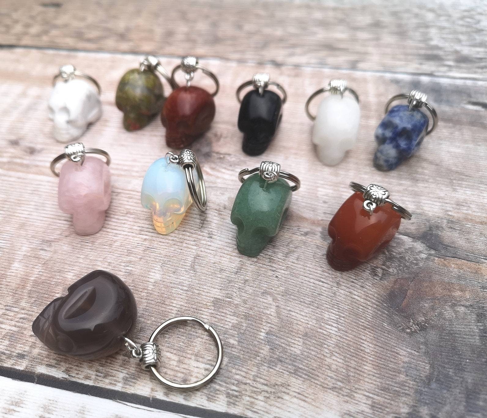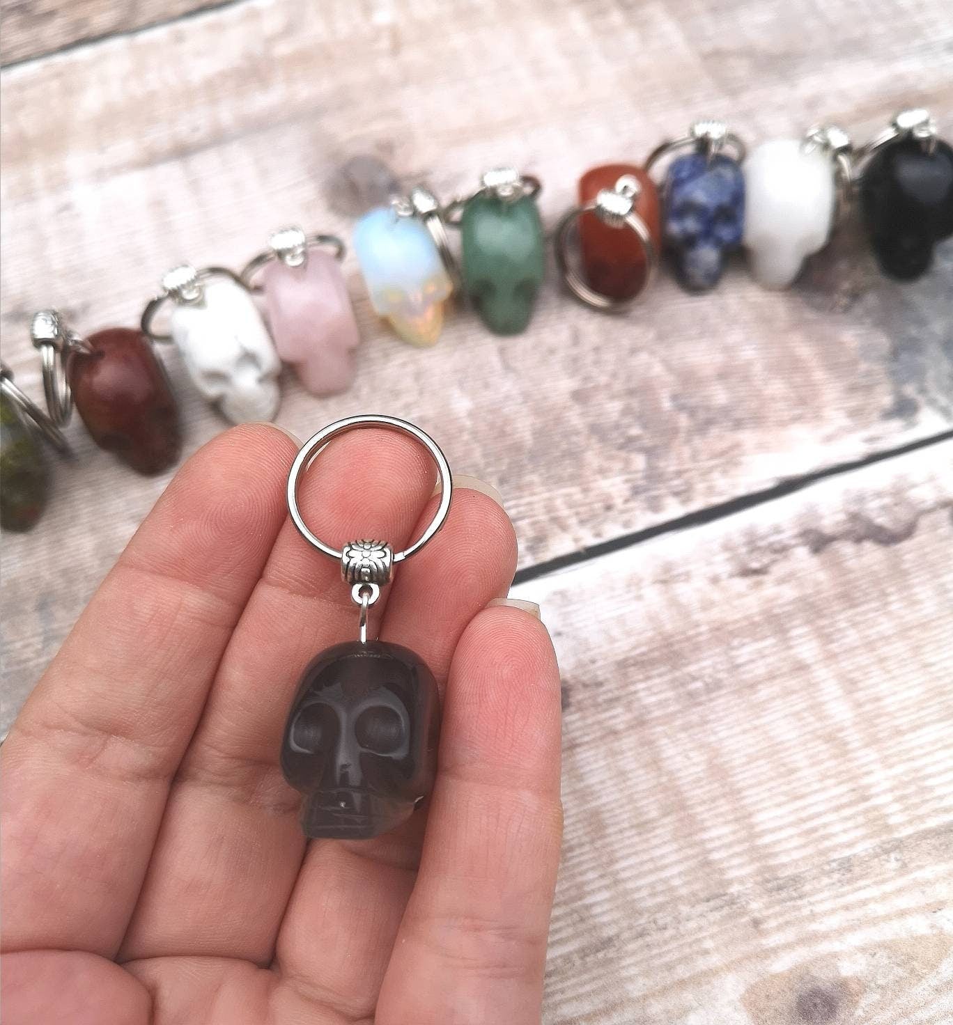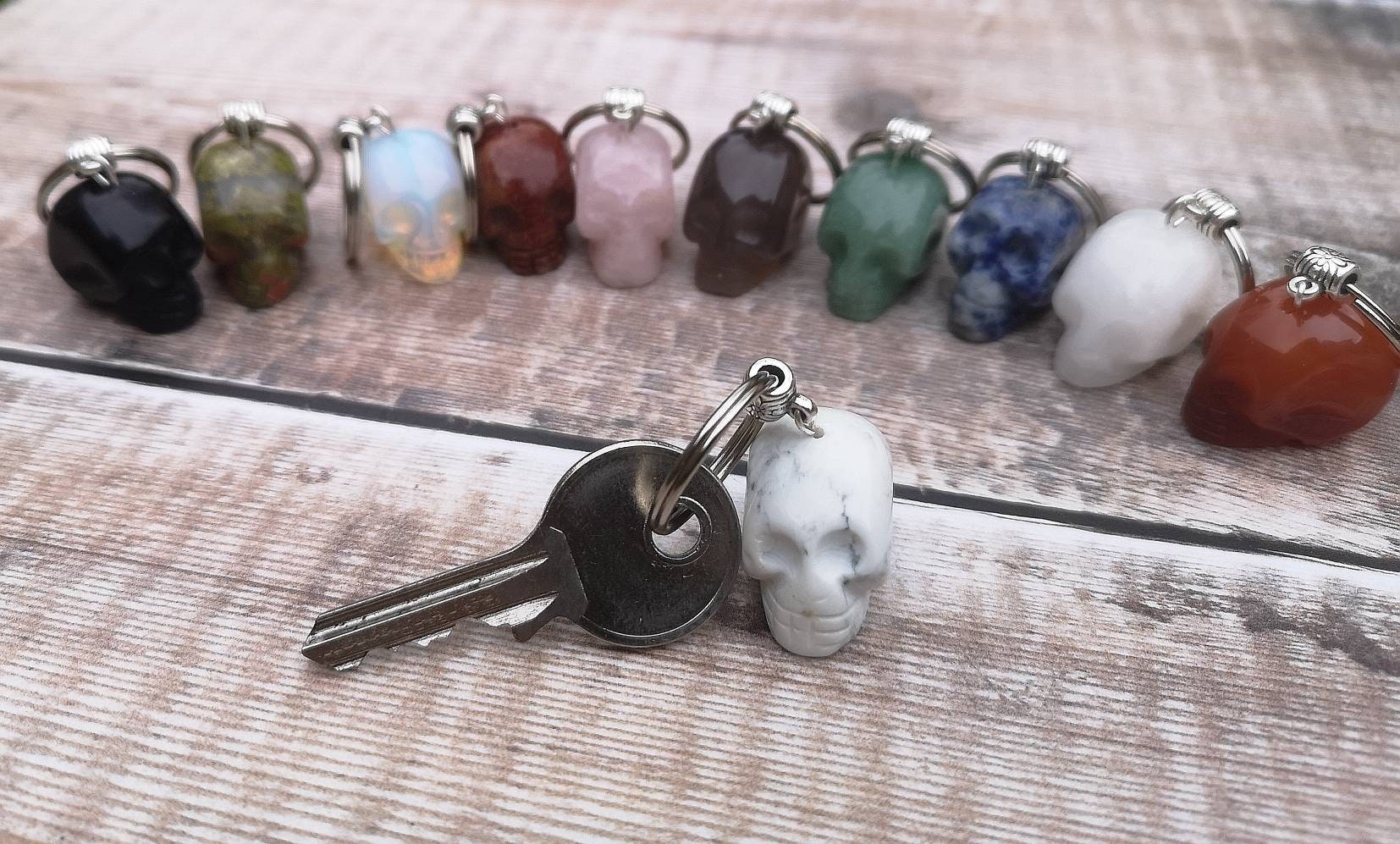 Mini Crystal skull keyring. Mini skull crystal. Skull carving.