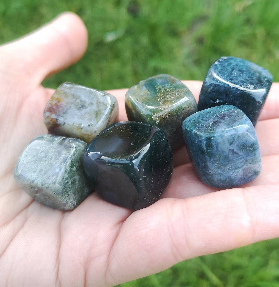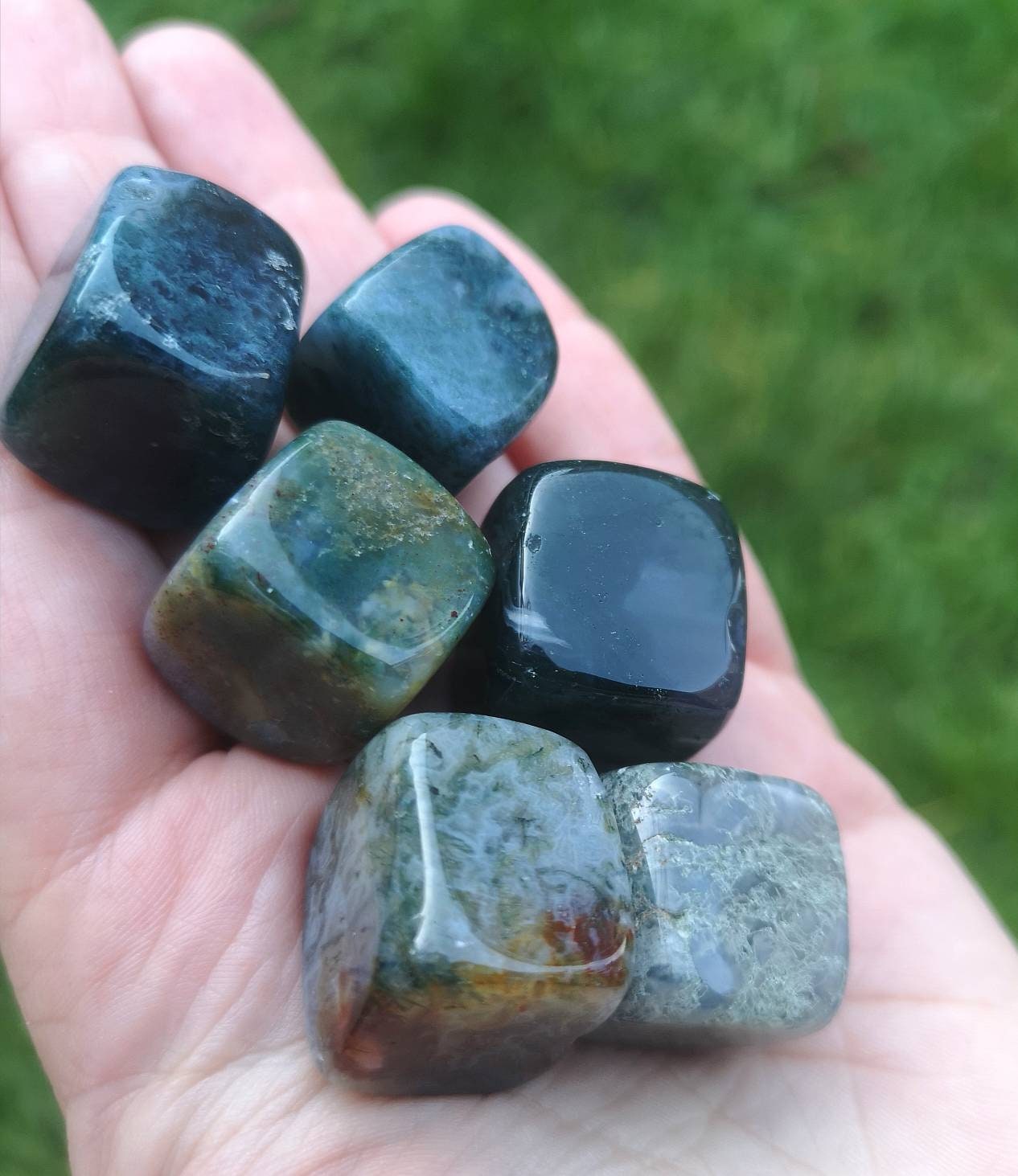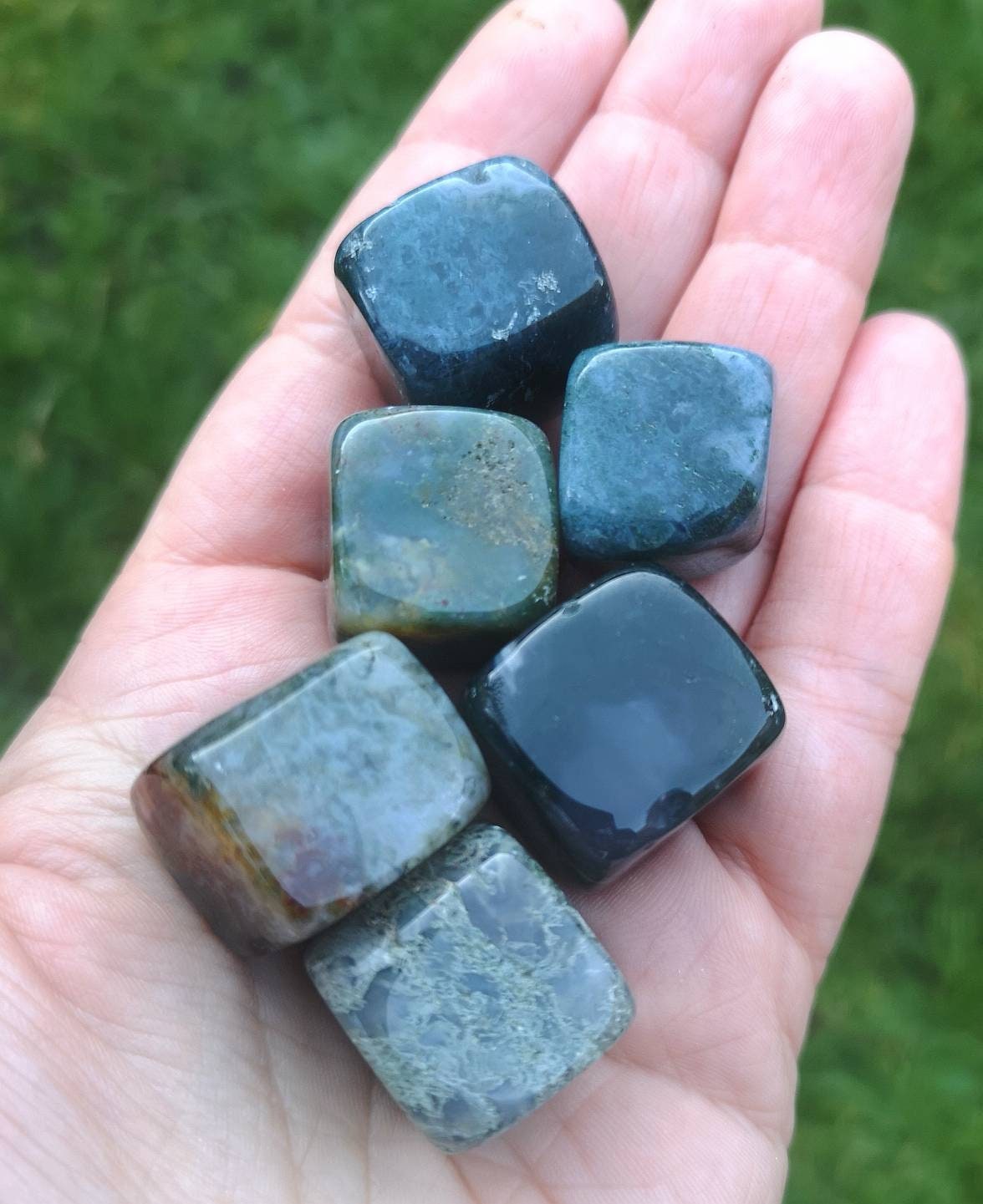 Moss agate cube. Moss agate premium tumble. Tumble Stone. Mini Crystal.