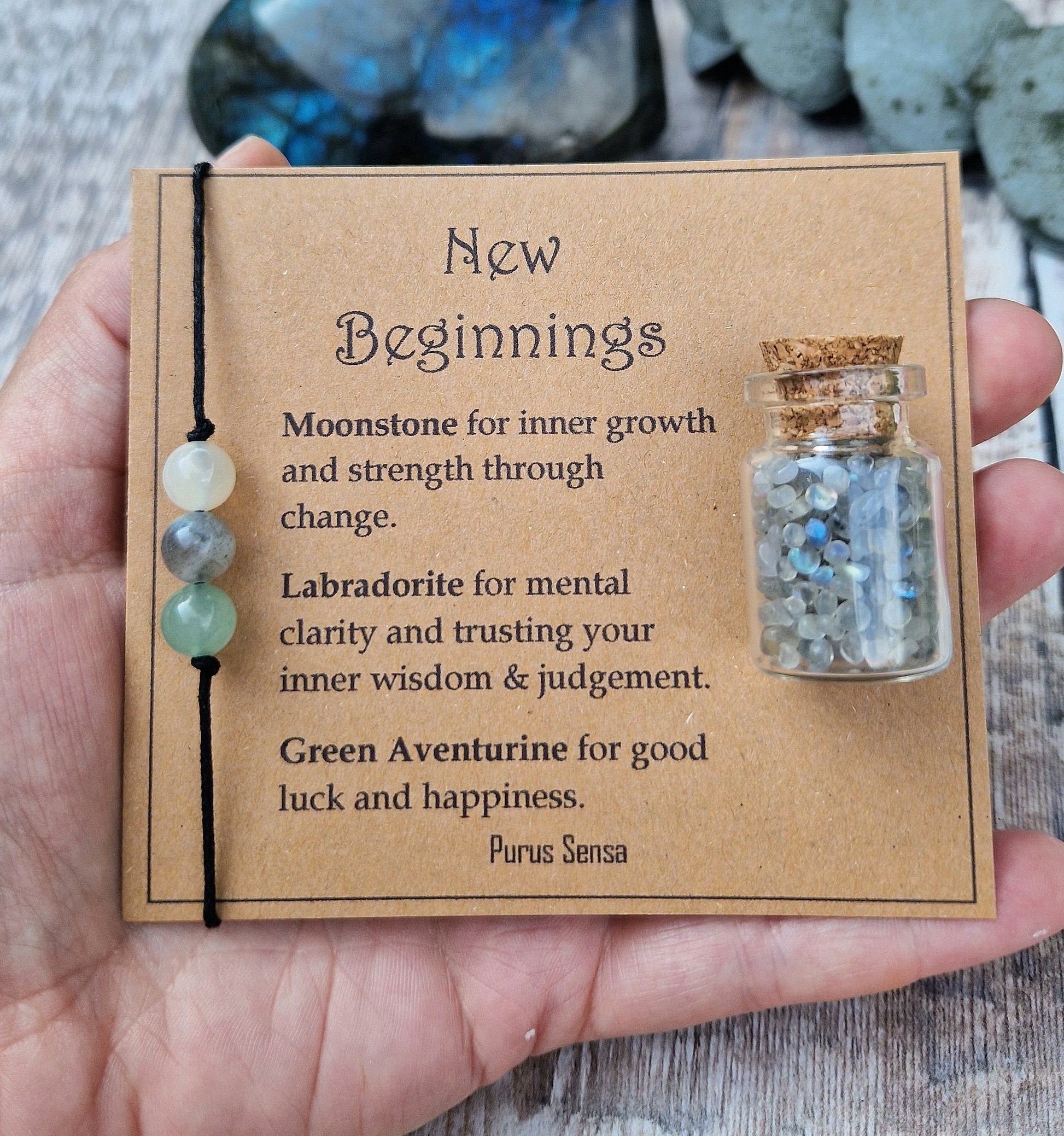 NEW BEGINNINGS. Crystal bracelet and wish bottle set for new beginnings. Fresh start. New project. New home. New job. New school. Breakup